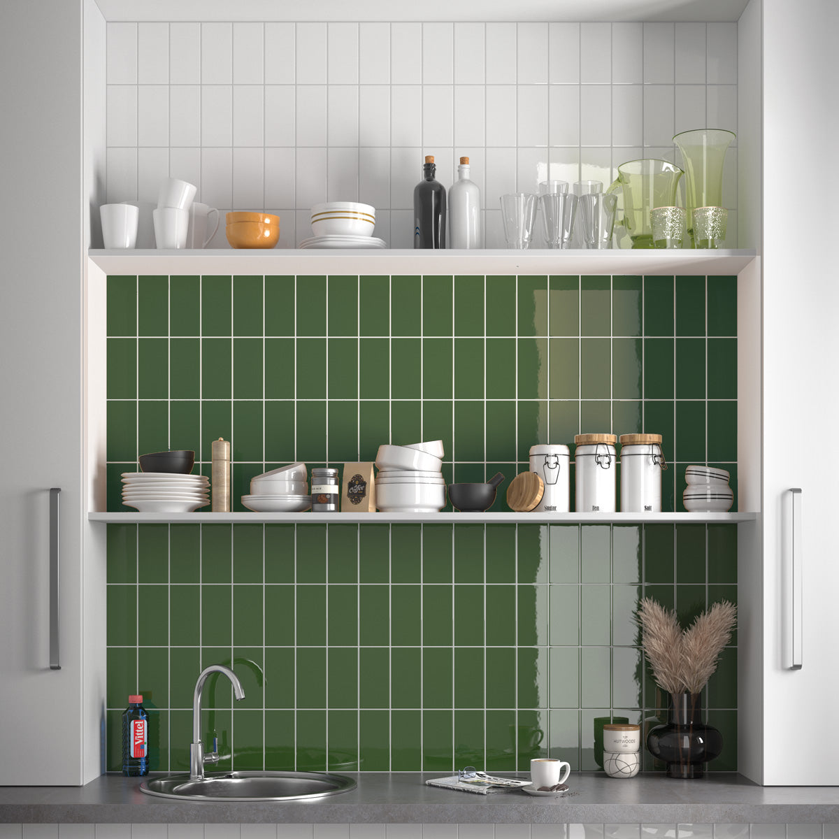 Vægflise Vision Victorian Green Blank 7,5x15 er en tidløs flise i en dyb grøn nuance med klassisk karakter. Den blanke overflade fremhæver farvens intensitet og giver et eksklusivt, næsten historisk udtryk. Et perfekt valg for dig, der ønsker at skabe en sofistikeret atmosfære inspireret af klassisk design.