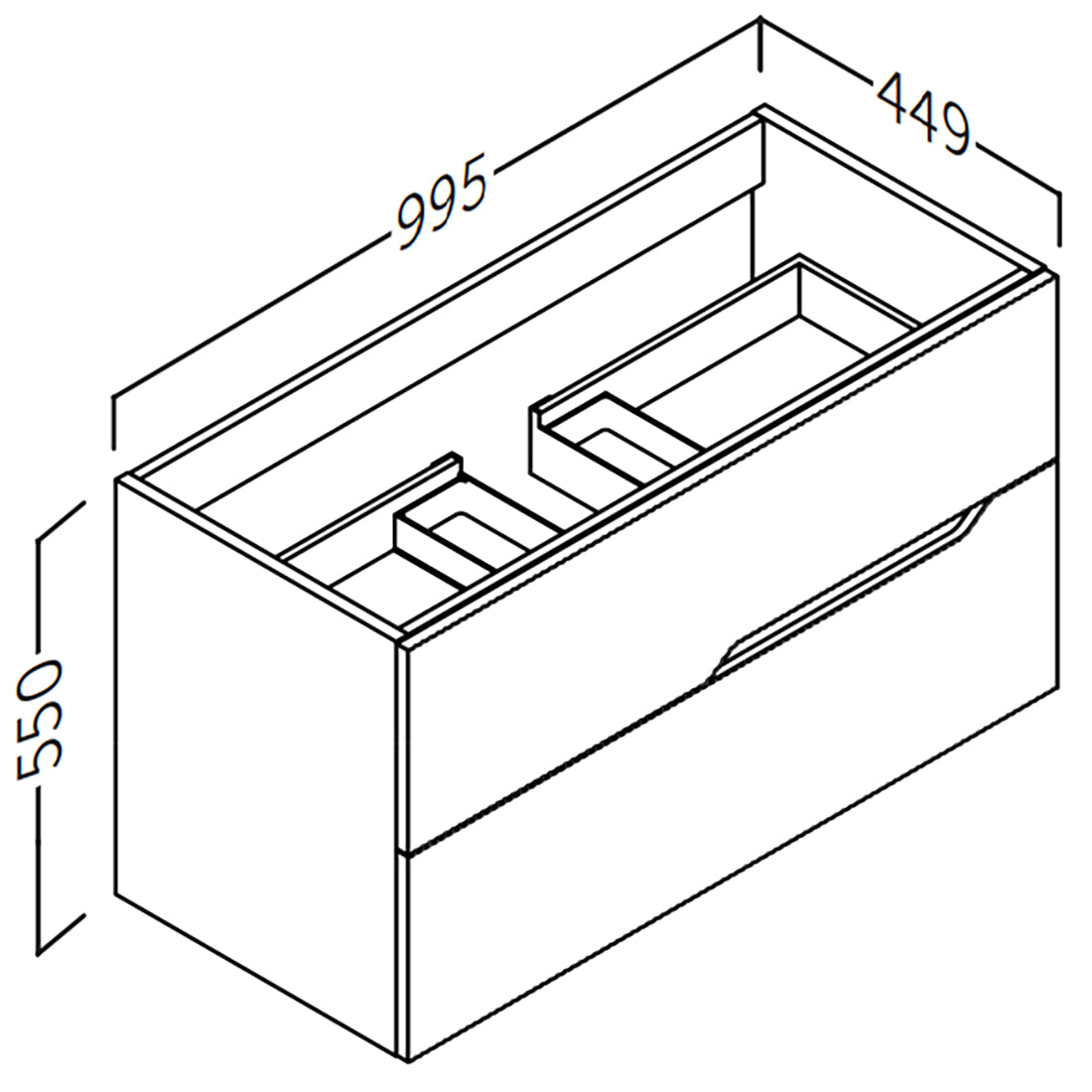 Kommoden fås i tre forskellige størrelser – 60 cm, 80 cm og 100 cm bred – hvilket giver fleksibilitet til forskellige typer badeværelsesrum, fra det mindre til det større badeværelse. Alle modeller har en dybde på 45 cm og en højde på 55 cm, hvilket giver tilstrækkelig opbevaringsplads uden at optage for meget plads. Dette kompakte, men rummelige design gør den egnet til mange forskellige typer badeværelseskonfigurationer.