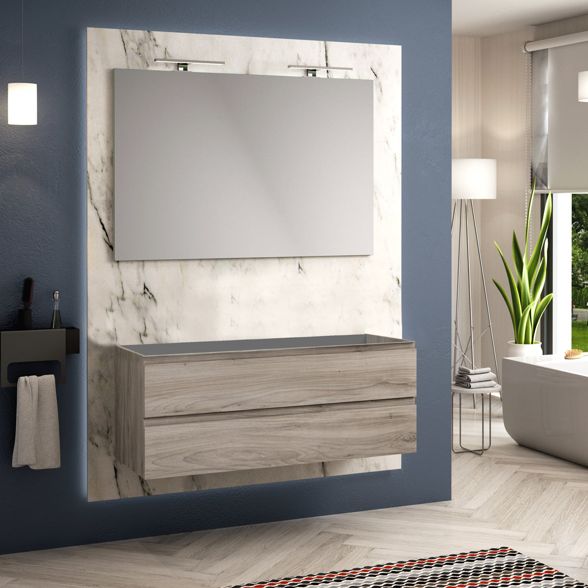 Tenfors Norrvik fås i flere udførelser: Eg, Valnød, Grå Fyr og hvid. Træimitationen er autentisk og giver en varm, naturlig følelse, mens den hvide variant tilbyder et minimalistisk og friskt udtryk. Overfladerne i lamineret MDF er holdbare og fugtresistente, hvilket gør dem særligt velegnede til badeværelsesmiljøer.
