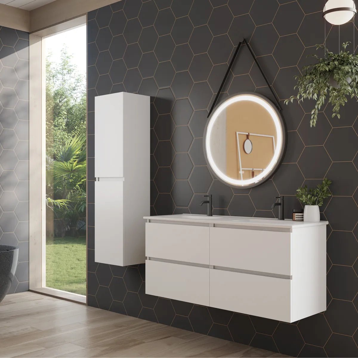 Møblerne i Viken-serien fås i tidløse farver – Hvid Mat, Sort Mat og Grå Mat. Den matte finish giver et sofistikeret og moderne udtryk, samtidig med at overfladen er let at rengøre og vedligeholde. Farverne er nøje udvalgt for at harmonere med forskellige badeværelsesstile og farveskemaer, hvilket gør det nemt at integrere møblerne i din indretning.