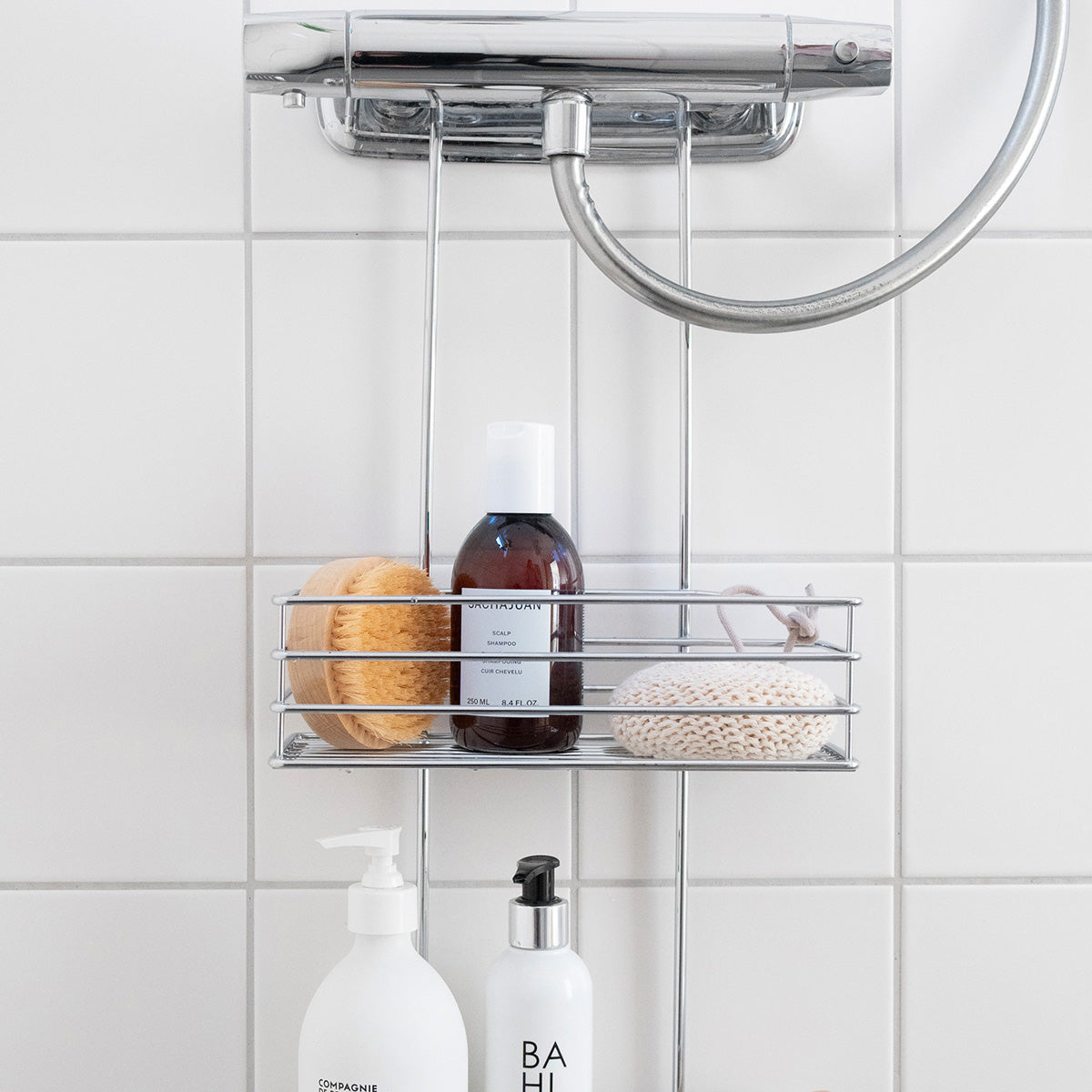 Kurven er fremstillet af rustfrit stål i høj kvalitet – et holdbart og rustfrit materiale, der modstår fugt og daglig brug. Beslagene er gummibelagte for at beskytte armaturet og sikre, at kurven sidder stabilt på plads. En perfekt brusehylde til den større husstand eller til dig, der ønsker ekstra opbevaringsplads. Findes også som enkelt model i sort mat og blank krom.