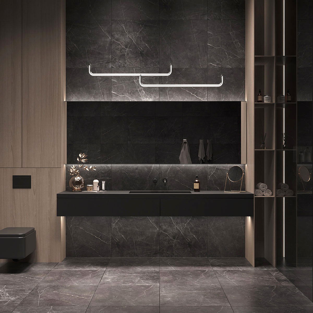 Svart marmor har varit en symbol för elegans och lyx i århundraden. Dess djupa, svarta färg och karakteristiska marmoreringar har gjort det till ett eftertraktat material för allt från skulpturer till arkitektoniska mästerverk. Klinker Venatto fångar denna tidlösa skönhet och ger dig möjligheten att integrera den i ditt hem.