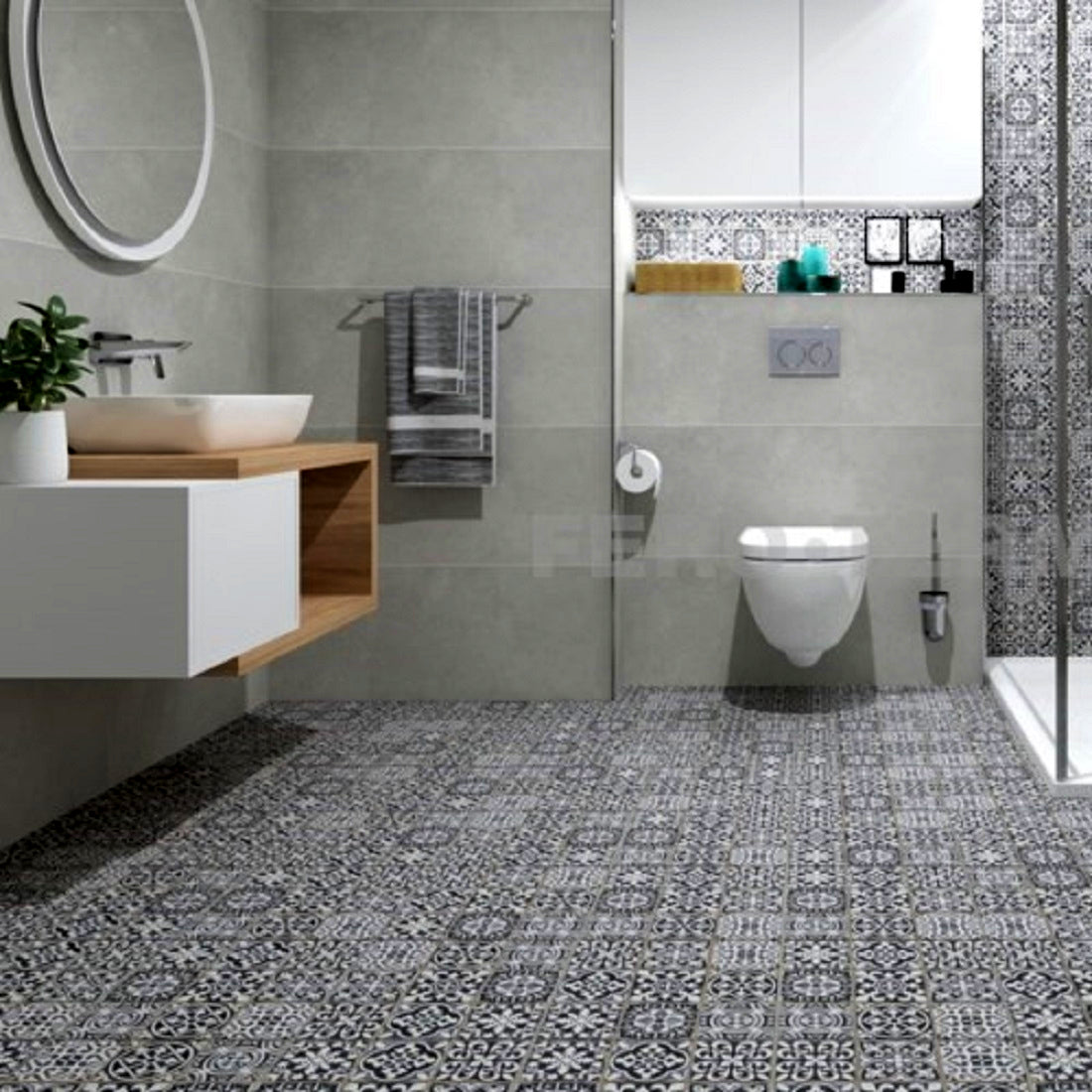 Vi anbefaler, at du bestiller 10 % ekstra badeværelsesklinker til spild, tilskæring og eventuelle fremtidige behov.