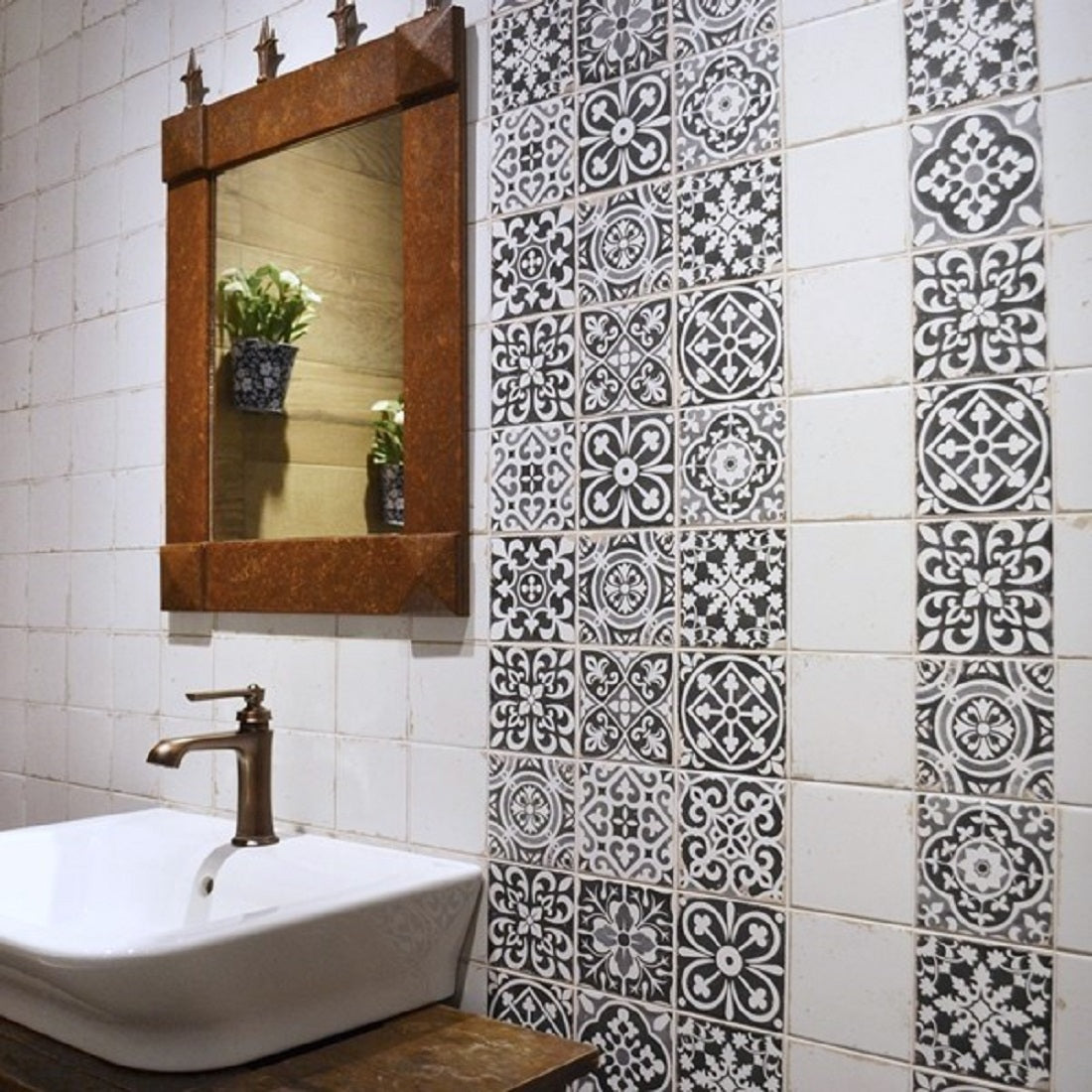 Klinker Peronda FS Faenza-N er en smukt mønstret flise med en marokkansk, men samtidig moderne fornemmelse. Flisen er opdelt i ni felter (á 11x11 cm) med en rille mellem felterne, som fuges sammen med de øvrige fuger for at skabe en ensartet og sammenhængende overflade.