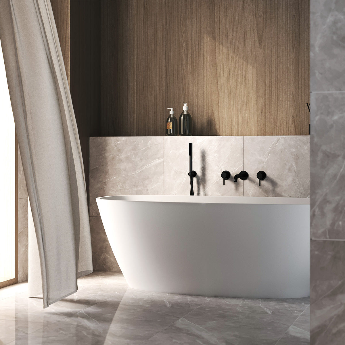 - Badeværelse: Den vandtætte og holdbare natur af granitkeramik gør Magda til et perfekt valg til badeværelser. De elegante marmormønstre skaber en luksuriøs spa-følelse, mens den mere skridsikre, matte overflade bidrager til sikkerheden.