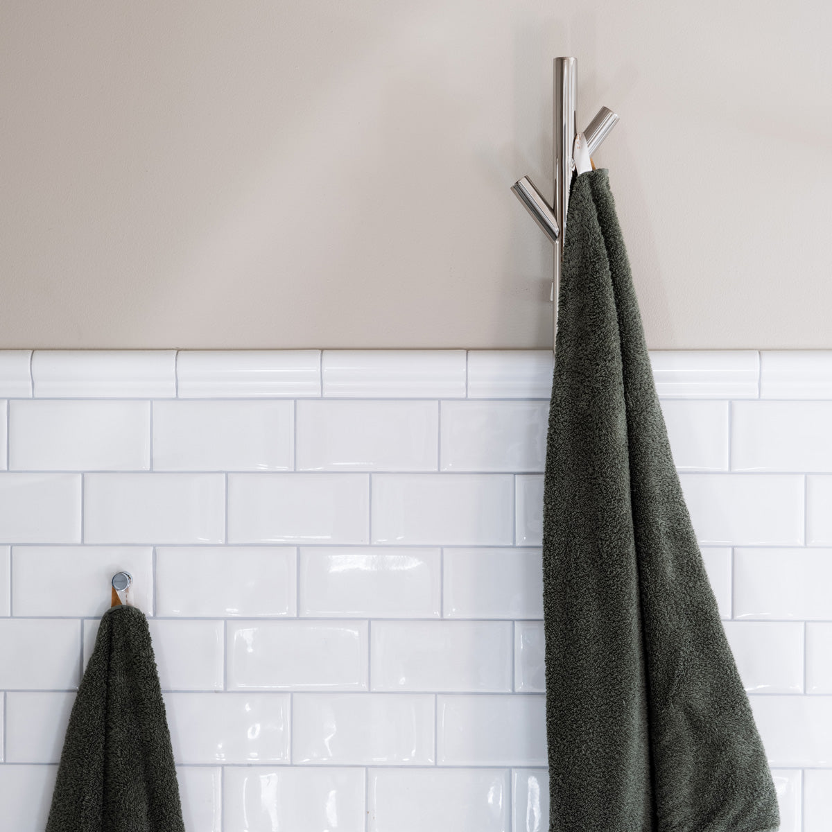 Den vertikale håndklædeholder Smedbo OUTLINE i poleret rustfrit stål er en elegant og funktionel detalje, der giver badeværelset et eksklusivt og moderne udtryk. Den høje, slanke konstruktion minder om en stiliseret gren og har tre praktiske arme, som giver god plads til håndklæder eller badekåber. Et design, der kombinerer form, funktion og nordisk enkelhed.
