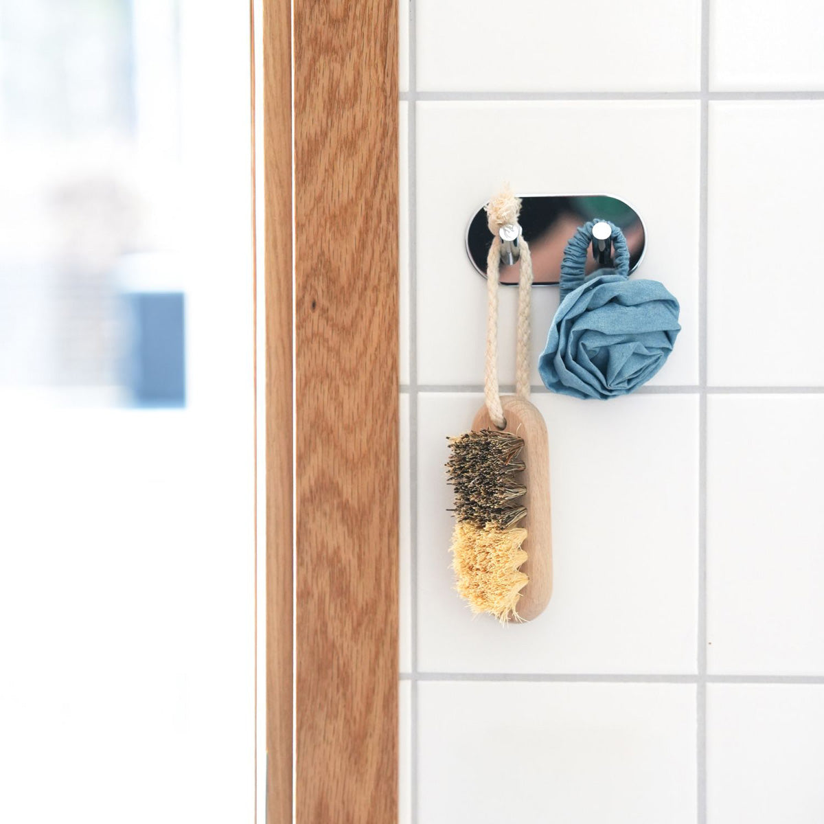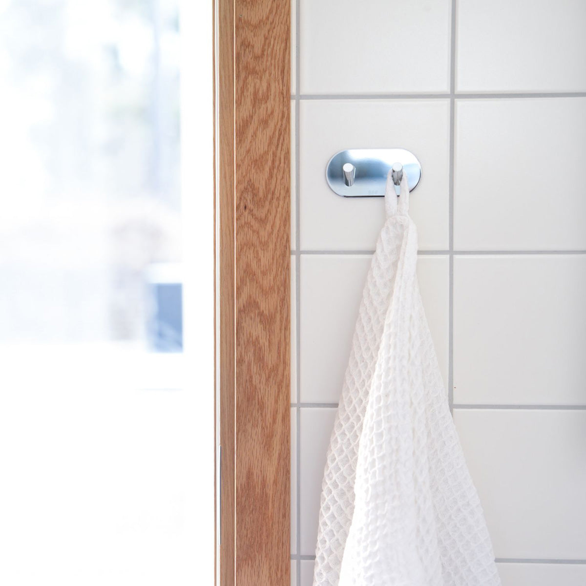 Krogen er fremstillet af rustfrit stål, et slidstærkt og fugtbestandigt materiale, der modstår rust selv i badeværelsets fugtige miljø. Takket være den selvklæbende 3M-tape monteres den hurtigt og nemt på fliser eller klinker – en stabil og holdbar løsning uden brug af værktøj. Enkel, elegant og perfekt til moderne badeværelser.