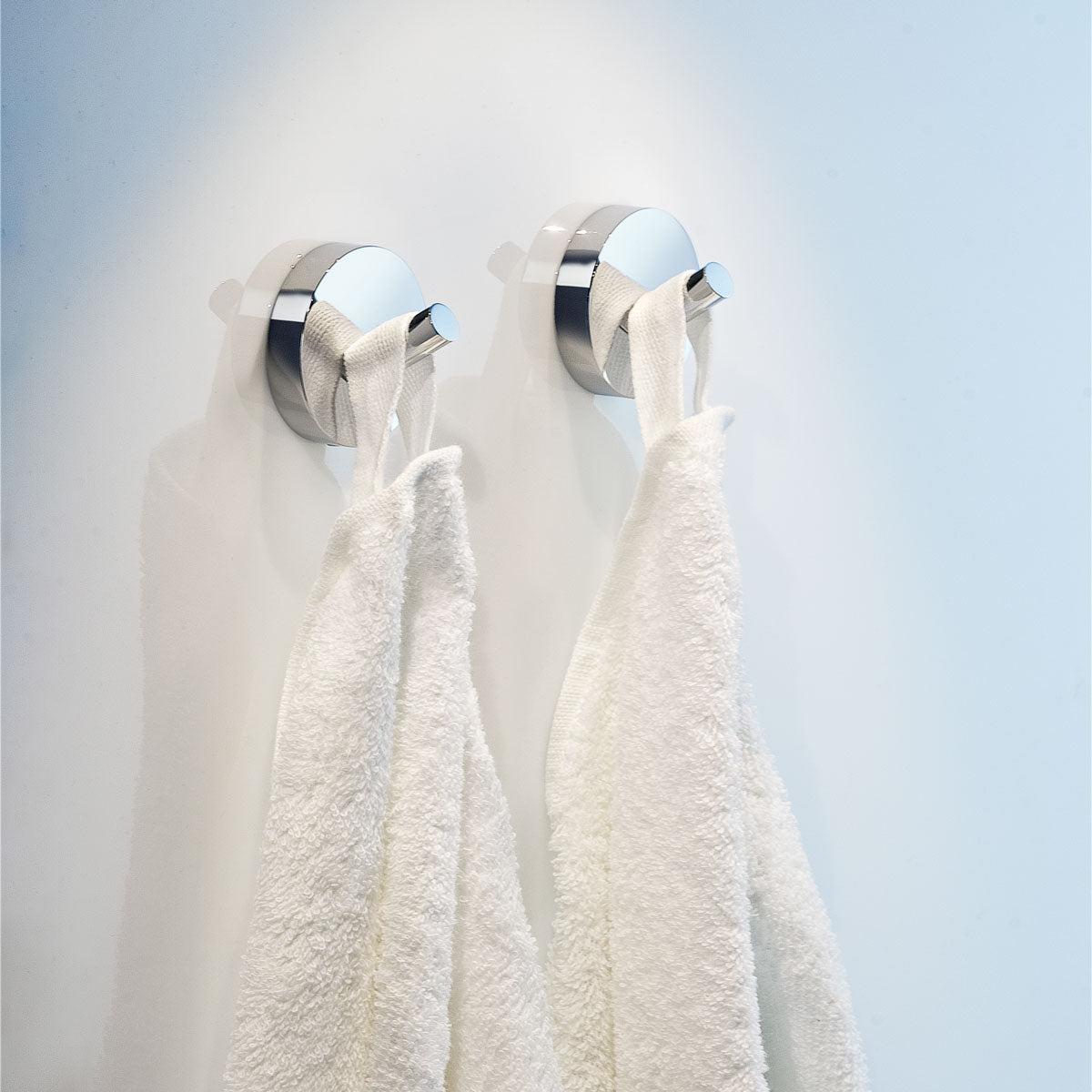 Enkeltkrog Smedbo HOME i blank krom er en elegant og stilren detalje, der løfter helhedsindtrykket på badeværelset. Den blanke overflade reflekterer lyset smukt og passer perfekt ind i både moderne og klassiske omgivelser. En praktisk krog til håndklæder, badekåber eller andre badeværelsesaccessories.