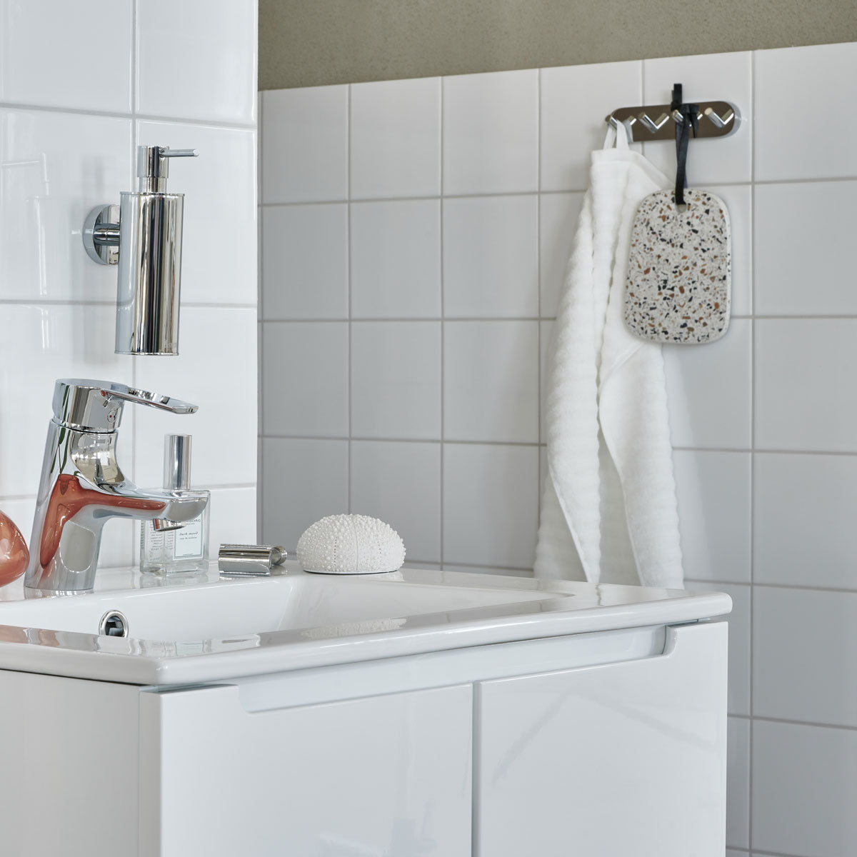 Badeværelsesserien HOME er præget af skandinavisk design, hvor form, funktion og kvalitet går hånd i hånd. En elegant firekrog i krom, der giver både orden og stil – det perfekte supplement til et gennemtænkt og moderne badeværelse.