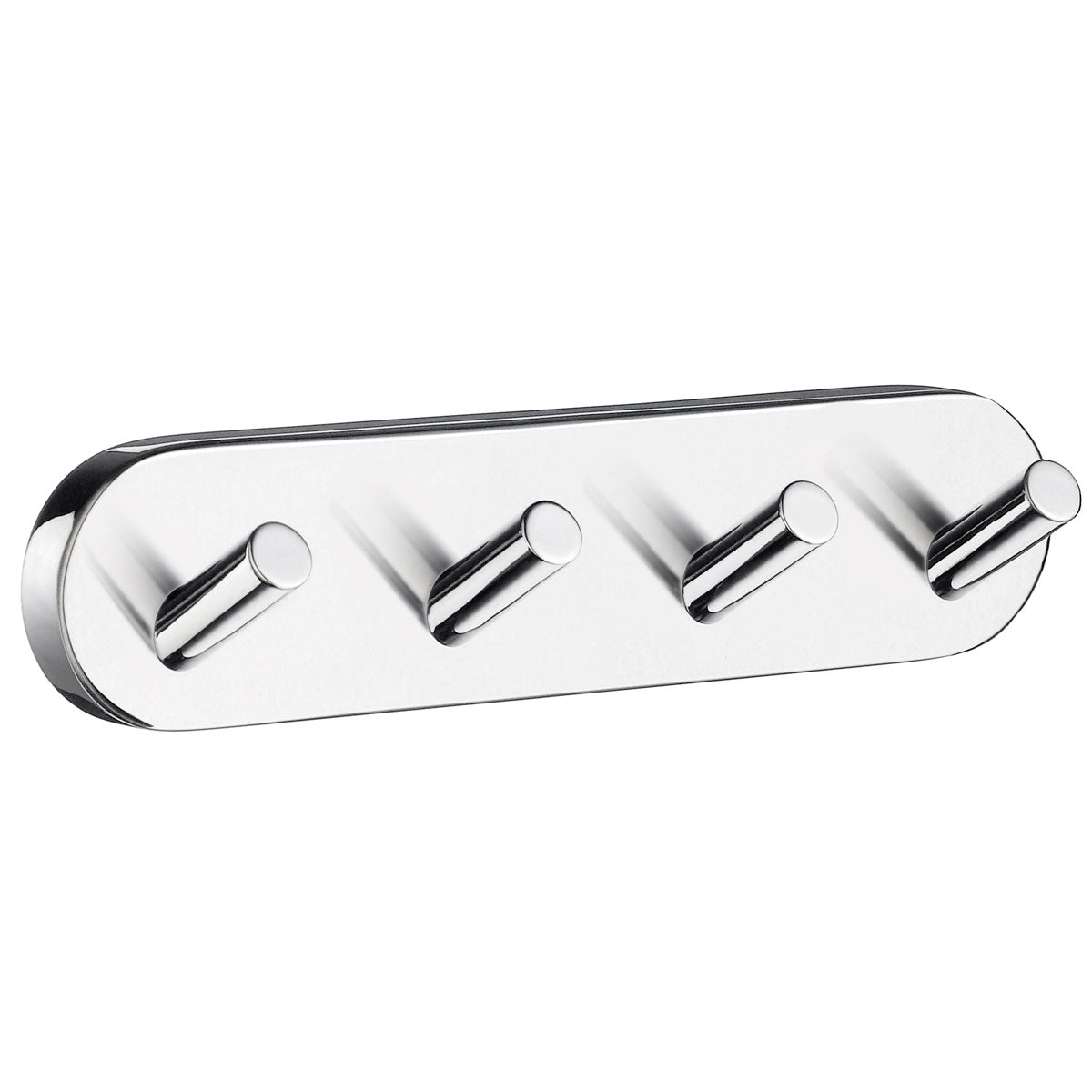 Firekrog Smedbo HOME i blank krom er en stilren og funktionel krogskinne, der kombinerer tidløst design med praktisk opbevaring. Den blanke kromoverflade reflekterer lyset og giver badeværelset et elegant og moderne udtryk. Perfekt til håndklæder, badekåber eller tøj – både på badeværelset og i entreen.