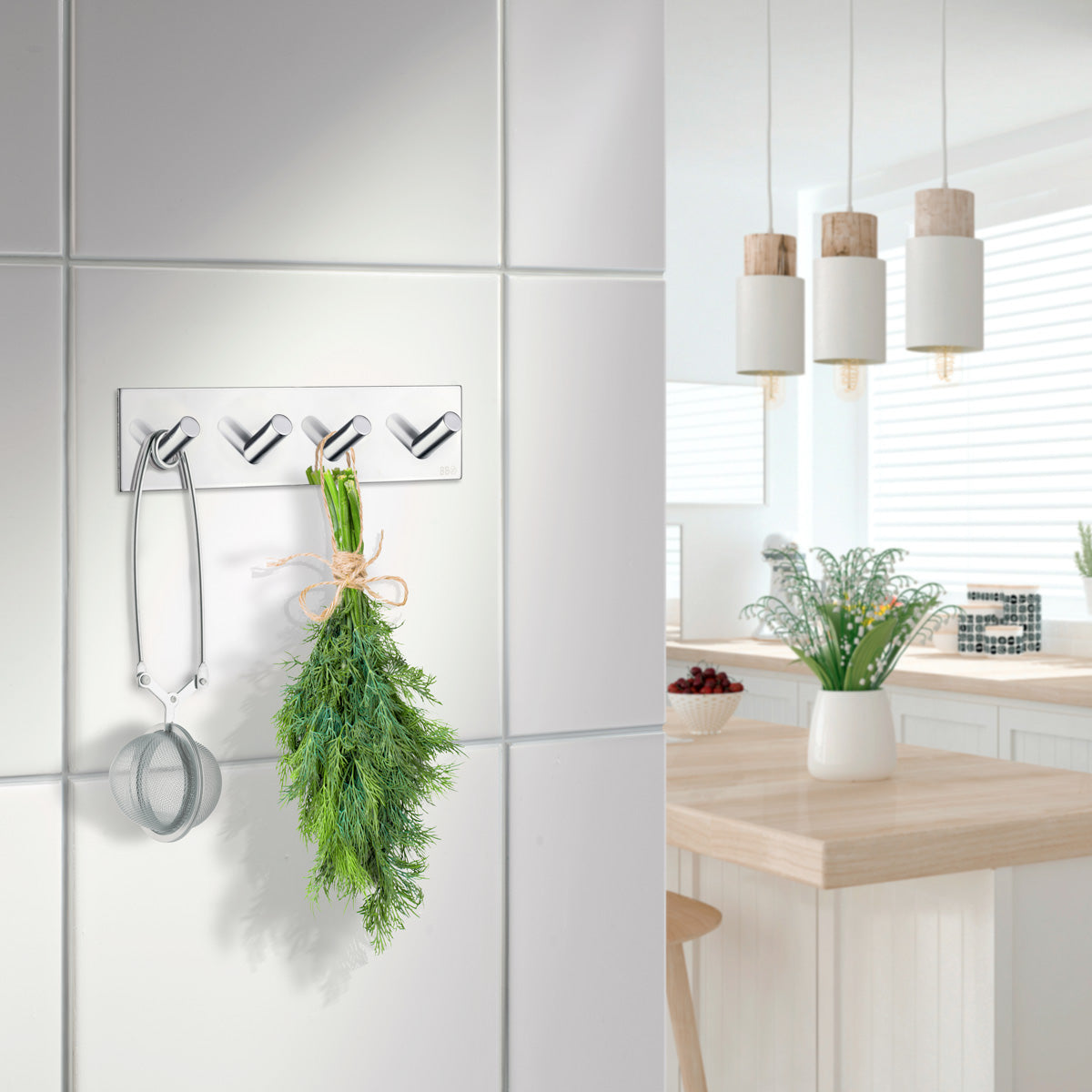 Krogen er fremstillet af rustfrit stål – et holdbart og rustfrit materiale, der modstår fugt og daglig brug. Takket være den selvklæbende 3M-tape monteres den nemt og sikkert på glatte overflader som fliser og klinker – en hurtig og borefri montering, der giver et rent resultat. Funktion, kvalitet og design i perfekt balance.