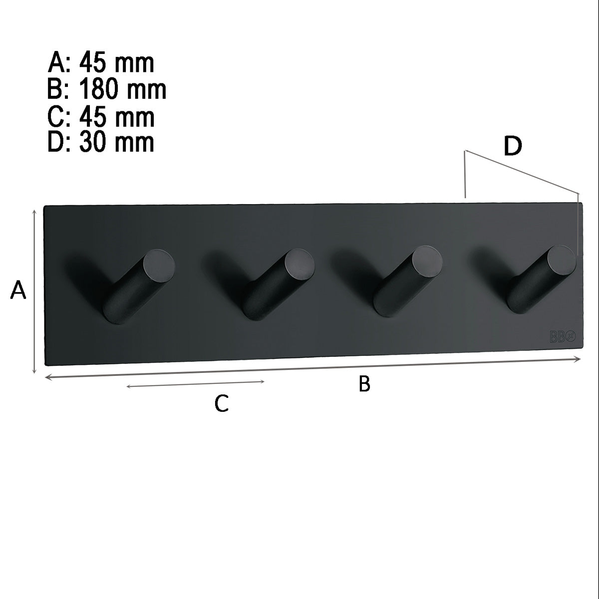 Firekrog Smedbo i sort mat er en elegant og funktionel detalje, der giver badeværelset et moderne og eksklusivt udtryk. Den kantede bagplade med rene linjer skaber et stilrent design, mens den matte, sorte overflade tilfører dybde og kontrast. En praktisk krogskinne, der giver plads til flere håndklæder, badekåber eller accessories – perfekt til et organiseret badeværelse med sans for design.