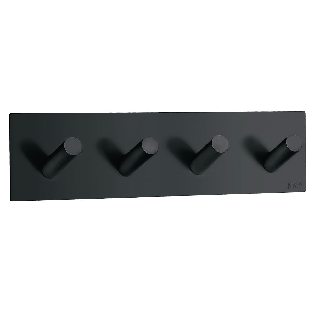 Firekrog Smedbo Selvklæbende Kantet Sort Mat – moderne krogskinne uden boring