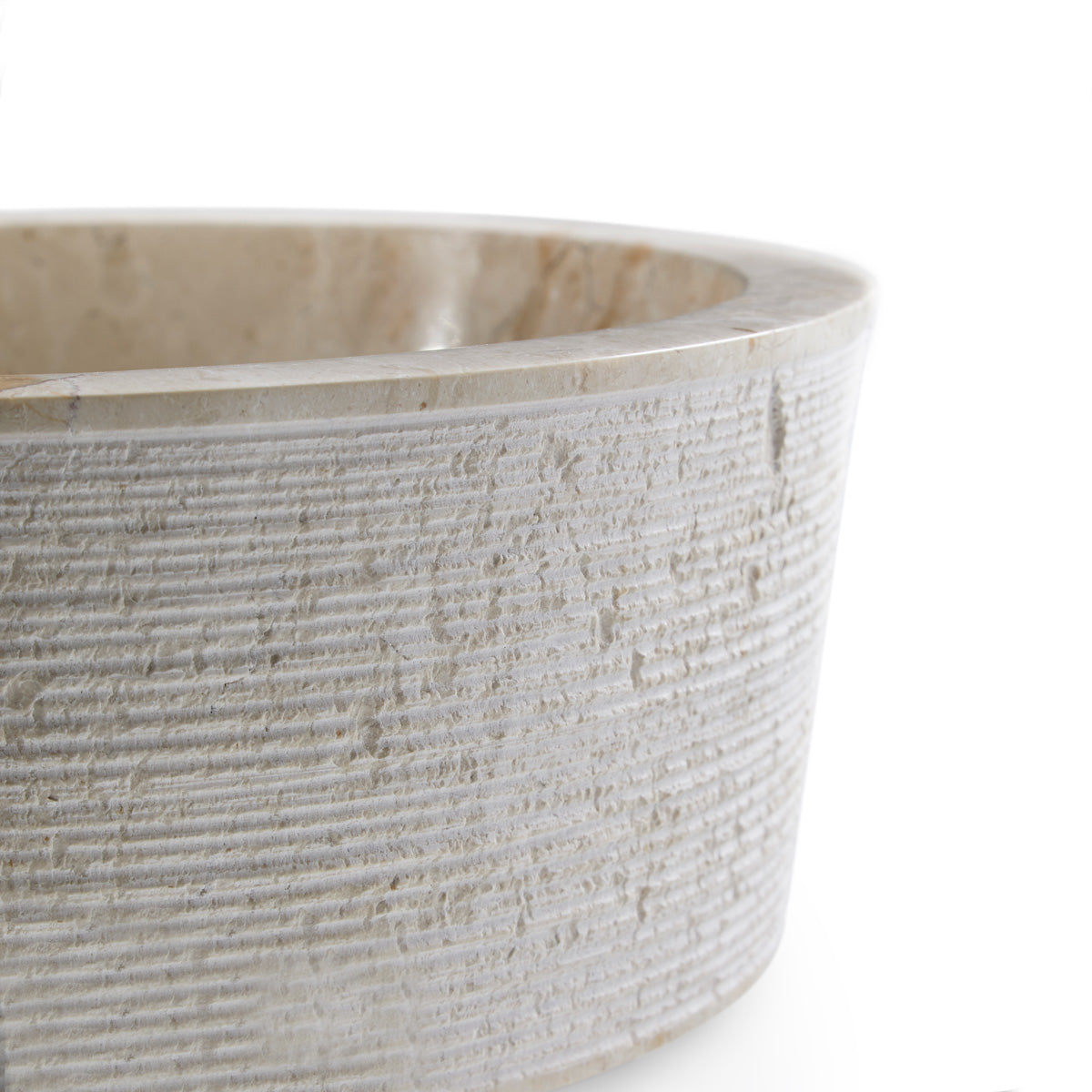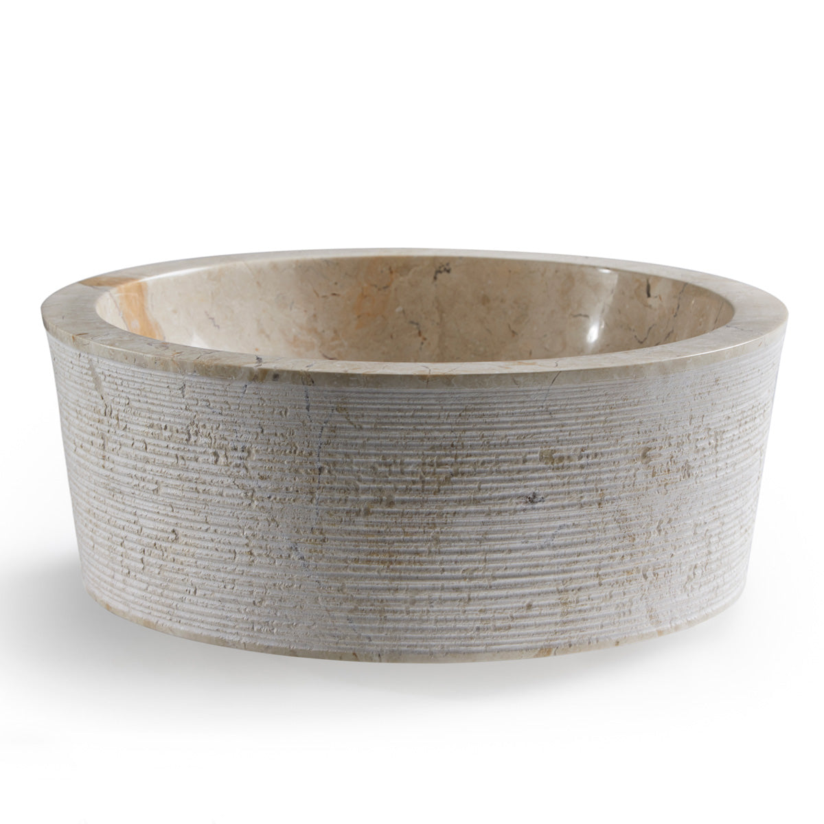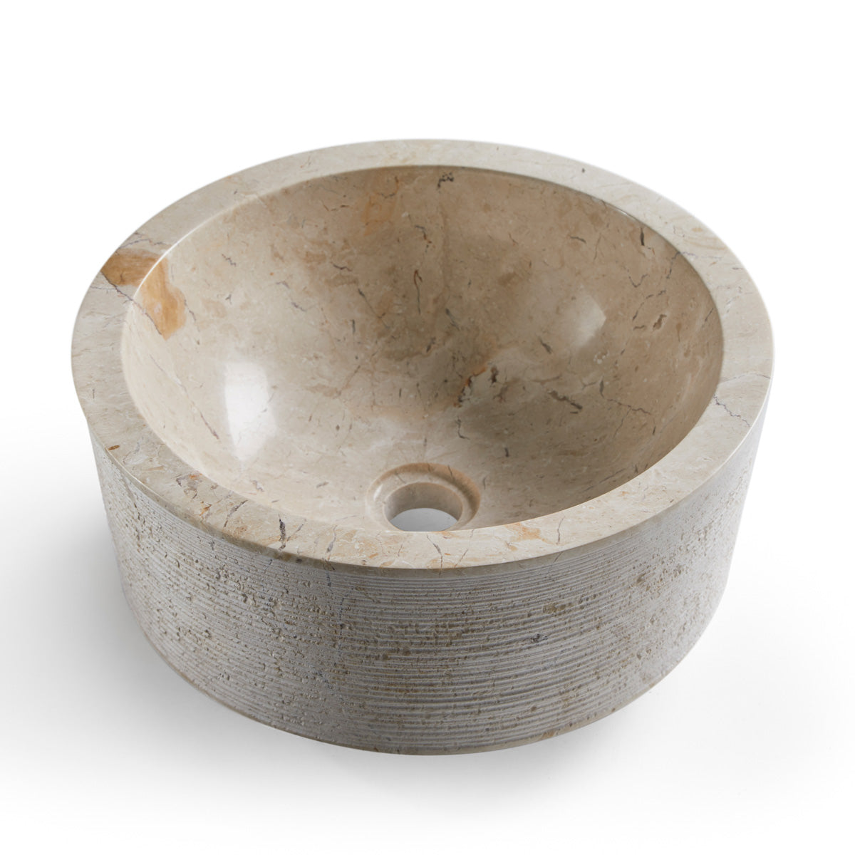 Håndvask Marmor er en elegant og tidløs håndvask fremstillet af ægte natursten, håndbearbejdet med traditionel stenhuggerteknik. Hver håndvask er udskåret af massiv marmor og har identiske mål, men naturlige variationer i farve og årer, som gør hvert eksemplar unikt. Den stribede yderside giver et smukt og taktilt udtryk, mens den glatte, højglanspolerede inderside fremhæver stenens naturlige glans og eksklusive karakter. Et perfekt valg til dig, der ønsker at skabe en harmonisk balance mellem naturlig skønhed og tidløst design på badeværelset.