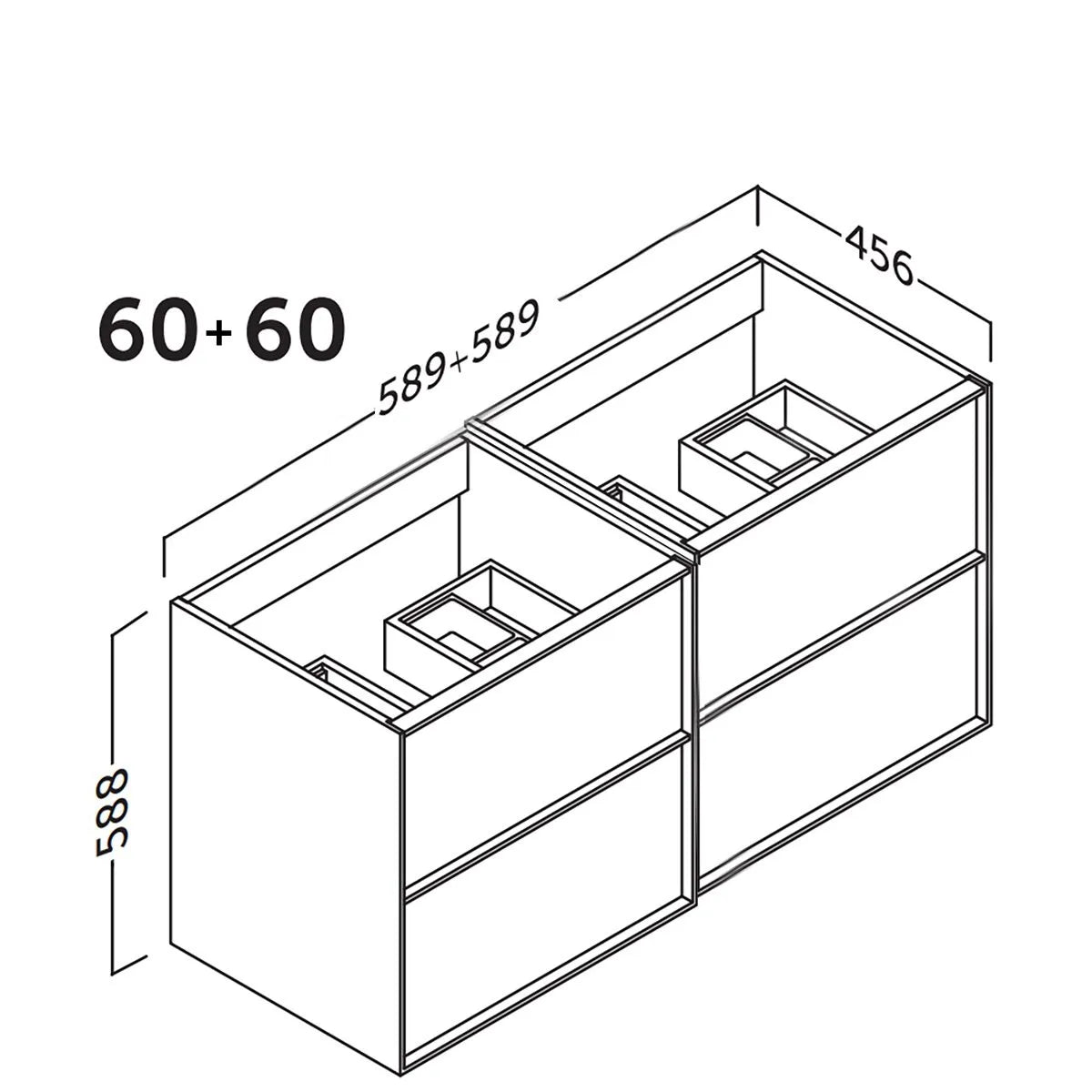 For dig, der ønsker en endnu mere fleksibel løsning, er det desuden muligt at kombinere to 60 cm kommoder for at skabe et møbel på 120 cm, som kan kombineres med vores dobbelte håndvaske på 120 cm. Dette giver ikke kun et elegant og ensartet udseende, men også fire separate skuffer, der gør det nemmere at organisere dine ejendele.