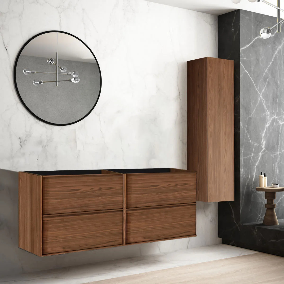 Højskabene i serien måler 35x140 cm og har en dybde på 35 cm, hvilket gør dem perfekte til både små og store badeværelser. De tilbyder rummelige hylder og soft-close døre, hvilket giver praktisk og fleksibel opbevaring til håndklæder og andre badeværelsestilbehør. Den skjulte ophængning giver en minimalistisk og svævende effekt, som letter rengøringen og bidrager til en luftig følelse.