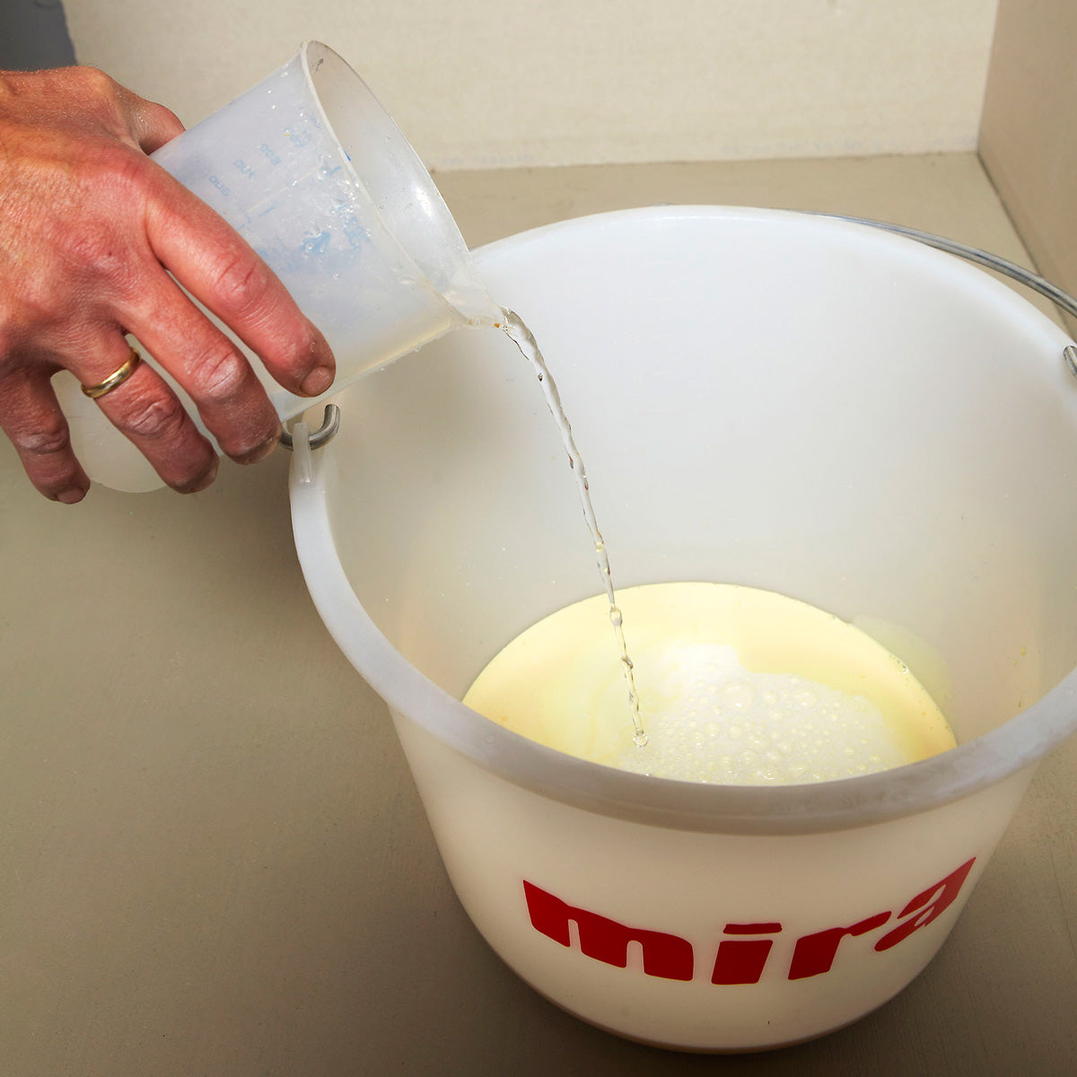 Primer Mira 4180 er en flydende, akrylbasseret væske tilsat gult farvestof.