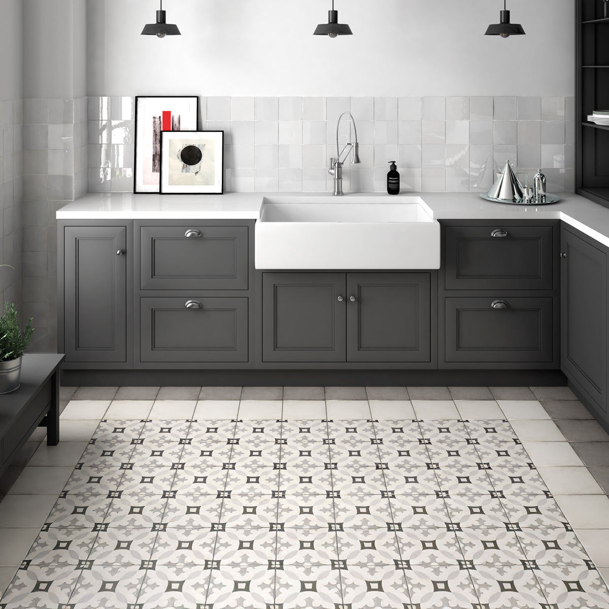Art Vienna Grey Mat 20x20 er en stilren og sofistikeret klinke med et blødt ornamentalt mønster i lysegrå, antracit og hvid. Det afbalancerede design giver et harmonisk og næsten tekstillignende udtryk, som passer lige godt i klassiske omgivelser som i moderne interiører med vintagepræg. Den matte overflade og de subtile farvevariationer understreger flisens tidløse karakter.