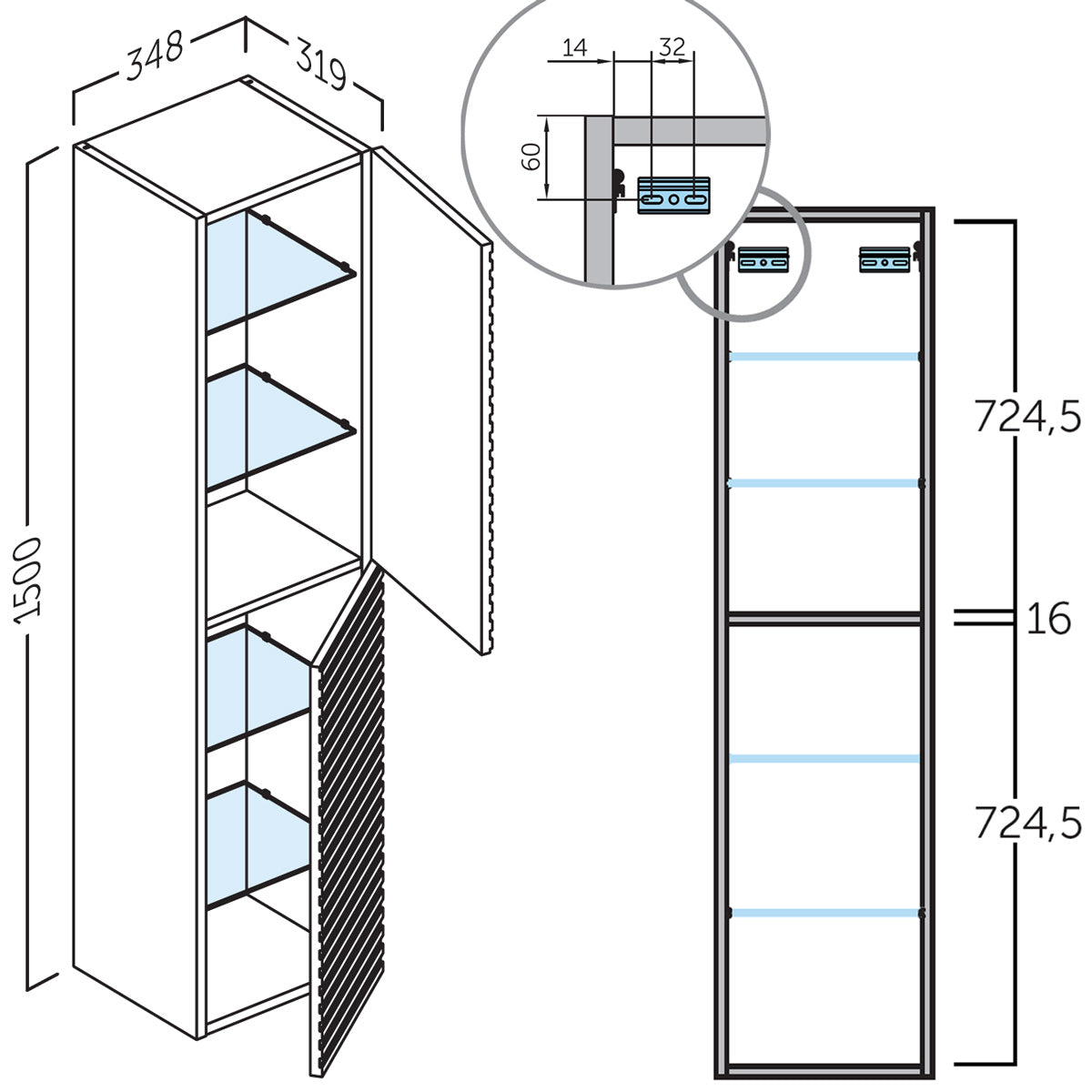 Badeværelsesskab Høj 35x150 cm Tenfors Stilja Valnød