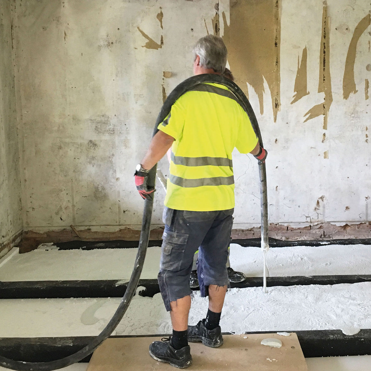 EPS Letvægtsmasse 360 er et tørt produkt, klar til brug efter blanding med vand. Det er let at bearbejde og fordele på gulvoverfladen.