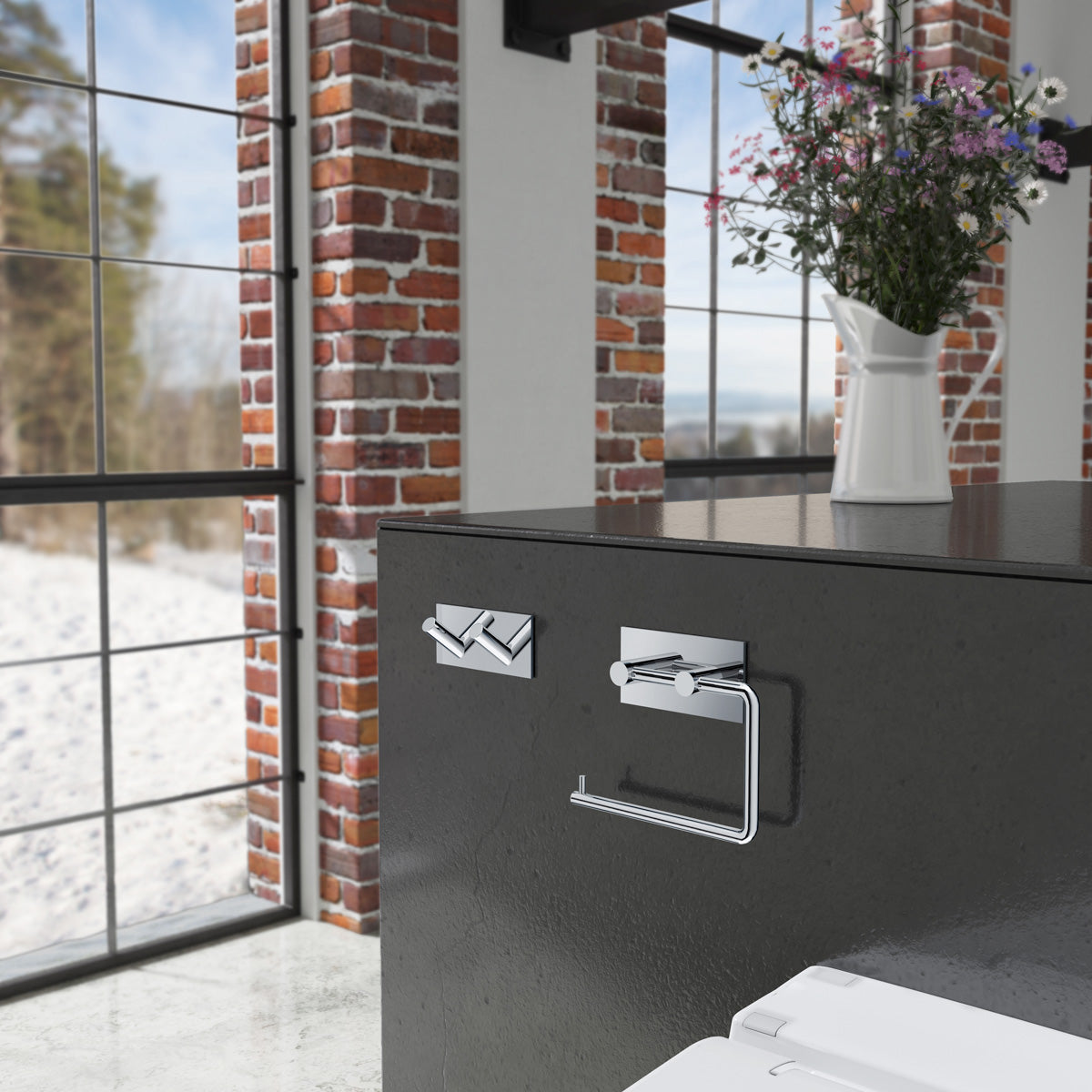 Toiletpapirholder Smedbo Selvklæbende Kantet Krom Blank – moderne holder uden boring