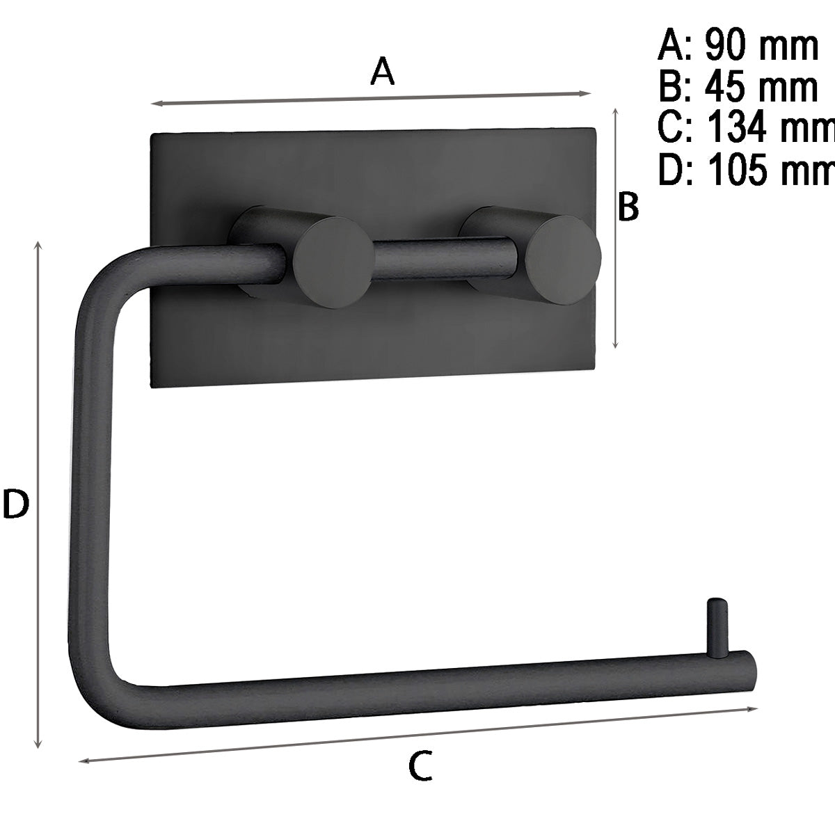 En selvklæbende toiletpapirholder i sort mat, der kombinerer moderne design med nem montering og holdbar kvalitet – perfekt til et stilrent og funktionelt badeværelse.