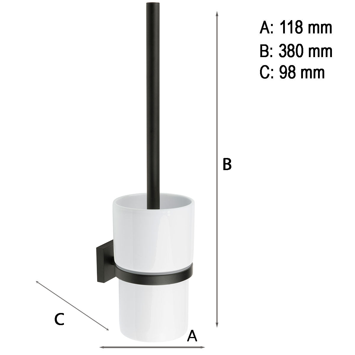Toiletbørste Smedbo HOUSE Sort Mat – vægmonteret toiletbørste med porcelænsbeholder