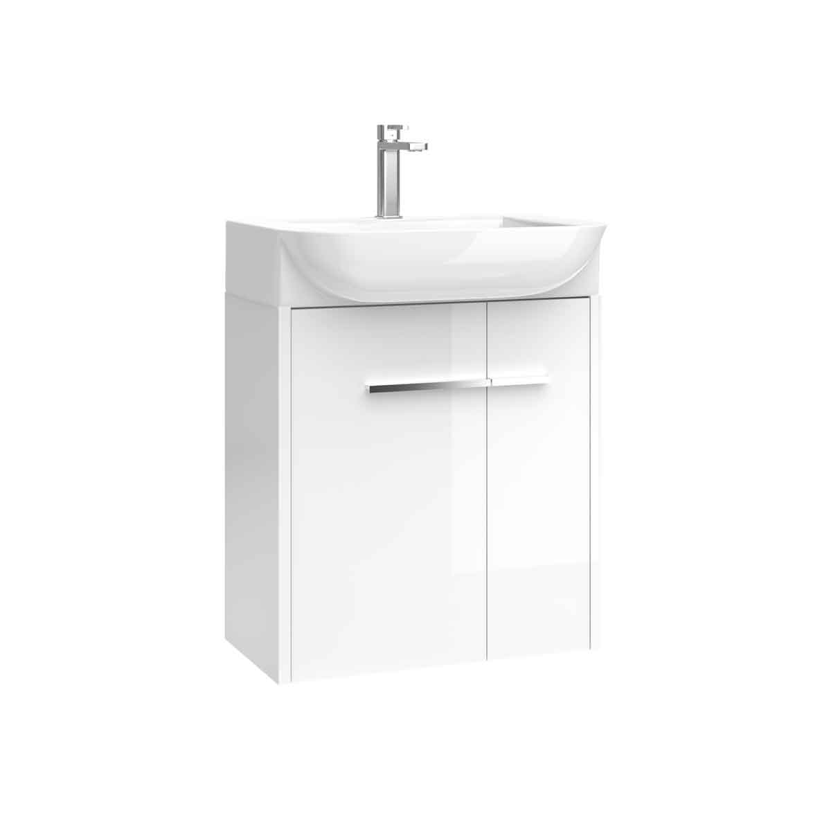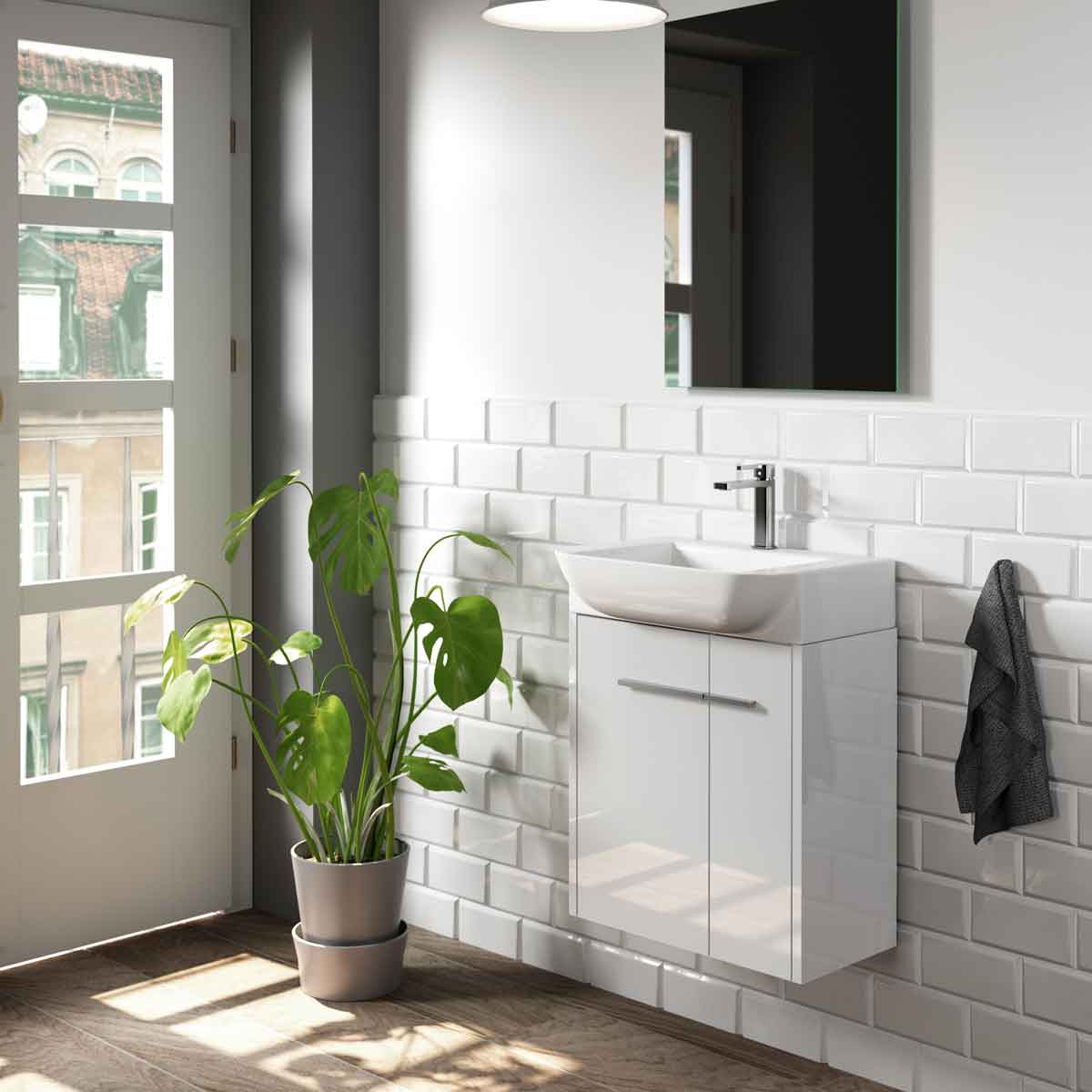 Tenfors Kompakt 55 cm Hvid Blank er et moderne og pladsbesparende badeværelsesmøbel, der er særligt velegnet til små badeværelser og gæstetoiletter. Med sin reducerede dybde på underskabet og en komfortabel håndvask i porcelæn får du en smart kombination af funktion, kvalitet og stilrent design. Den højglans hvide finish sammen med kromdetaljer giver et friskt og tidløst udtryk, som er nemt at matche med øvrig badeværelsesindretning.