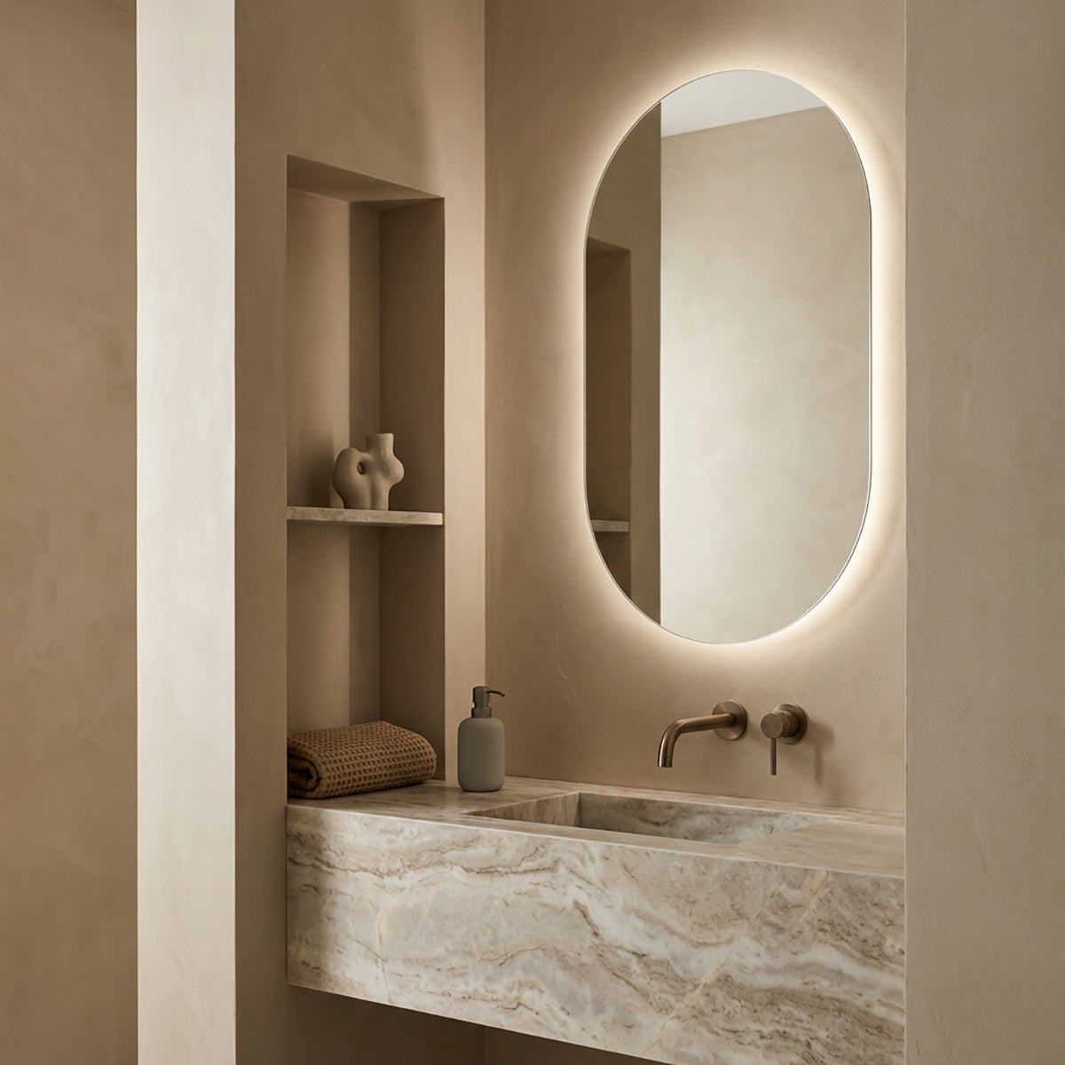 - Ovalt badeværelsesspejl (blød, afrundet form)