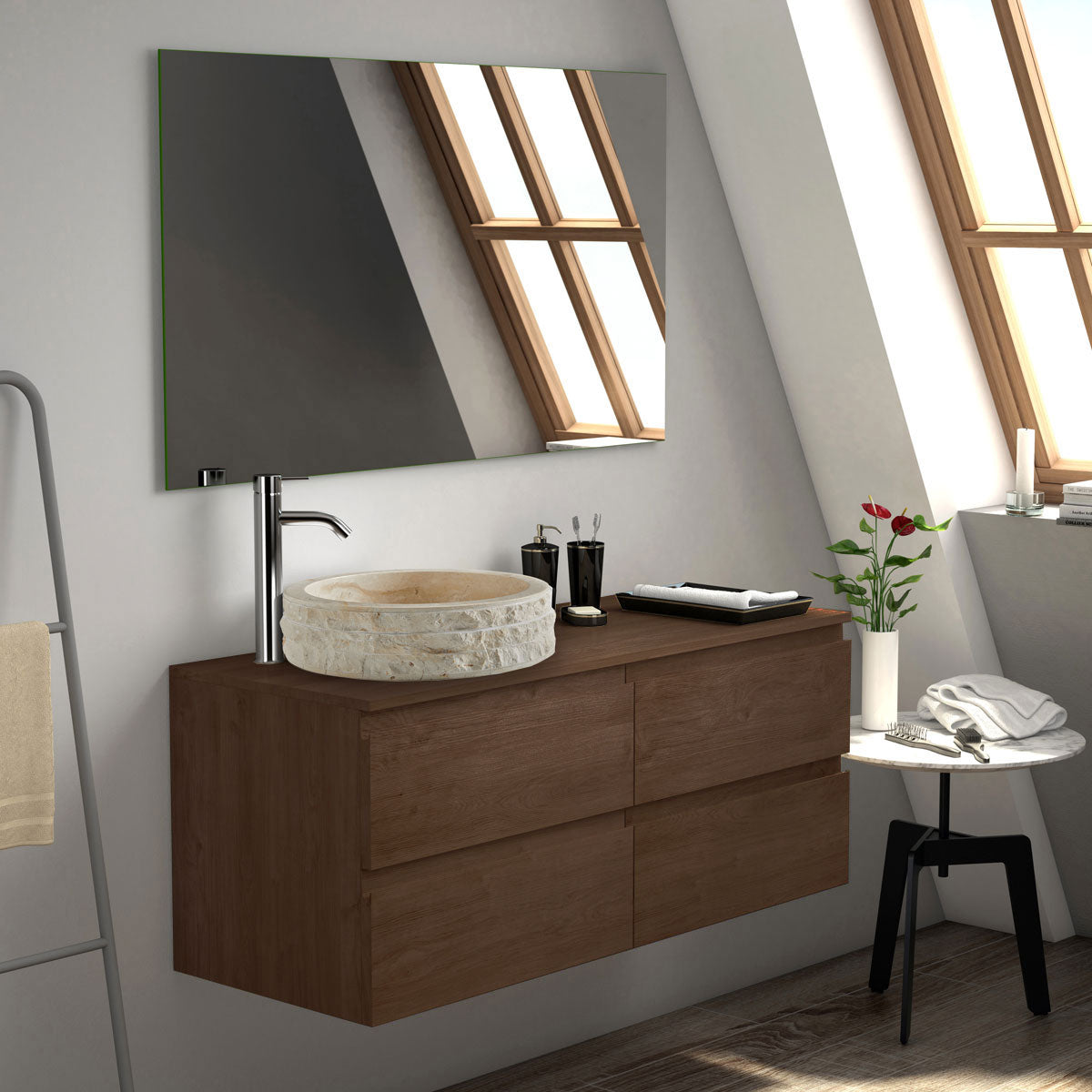Tenfors bordplade i størrelsen 120x45 cm i valnød er et perfekt valg til større badeværelser, hvor du vil skabe en luksuriøs og funktionel helhed. Den ekstra brede overflade giver generøs afsætningsplads og passer glimrende sammen med én eller to fritstående håndvaske, mens valnødfinishen bidrager med et varmt og eksklusivt udtryk.