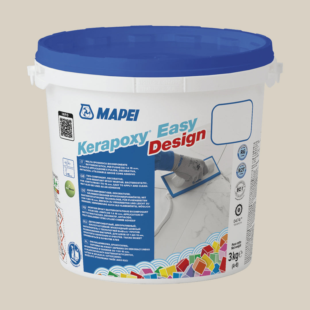 Kerapoxy Easy Design 3 kg er en to-komponent, alsidig, dekorativ og syrebestandig epoxyfugemasse med et bakteriostatisk virkestof og BioBlock®- teknologi. Produktet er enkelt at påføre og rengøre, ideellt til fugning af keramiske fliser, glasmosaik og stenmaterialer. Til fugning af 1– 15 mm brede fuger. Kan også bruges som lim.