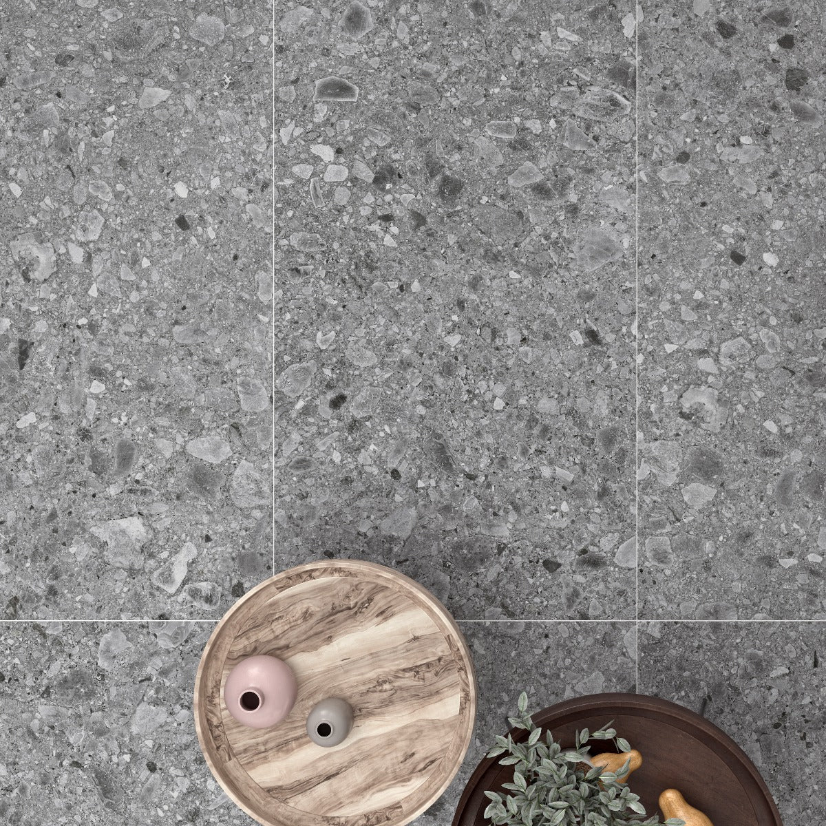 Klinker Flodsten er en granitkeramik af høj kvalitet med tidløs elegance, et innovativt produkt der kombinerer høj kvalitet med æstetisk skønhed. Den matte overflade giver en autentisk følelse, med terrazzo-lignende mønstre der skaber en unik og stilfuld atmosfære. Inspireret af den klassiske italienske natursten Ceppo di Gre, tager Klinker Flodsten keramikkens verden til nye højder.
