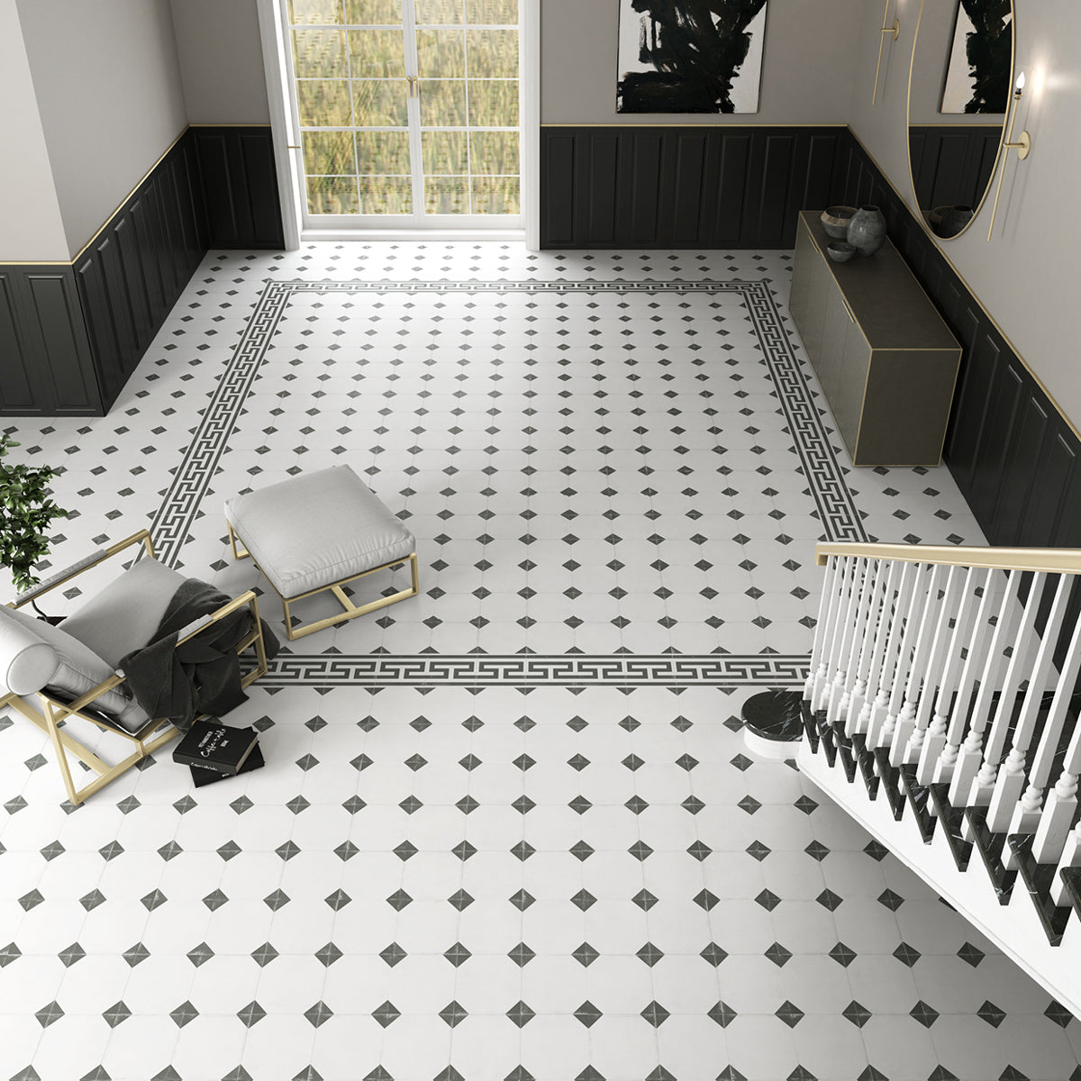 Klinker Tango Crespo er en sofistikeret serie af granitkeramik, der forener klassisk æstetik med moderne funktionalitet. Med et elegant mønster i grafitgrå og hvid, inspireret af de historiske enkaustiske gulvfliser, der har deres oprindelse for over et årtusinde siden, tilbyder denne serie et tidløst design, der passer perfekt i både moderne og traditionelle miljøer.
