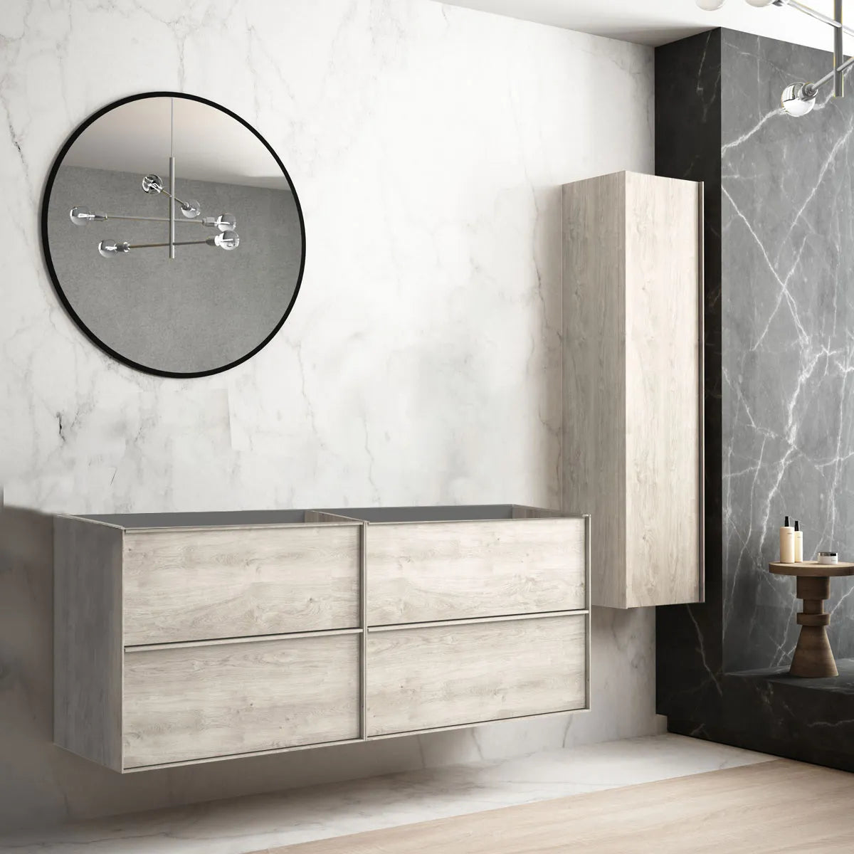 Tenfors Nordlig er en høj-kvalitets og elegant møbelserie, der kombinerer stil og funktion, perfekt til moderne badeværelser. Serien omfatter både kommoder og højskabe i træimitation eller matlakeret overflade, som tilsammen tilbyder en harmonisk og ensartet løsning til badeværelsesindretning. Med sit tidløse design og gennemtænkte detaljer skaber Tenfors Nordlig en afslappet og eksklusiv atmosfære.