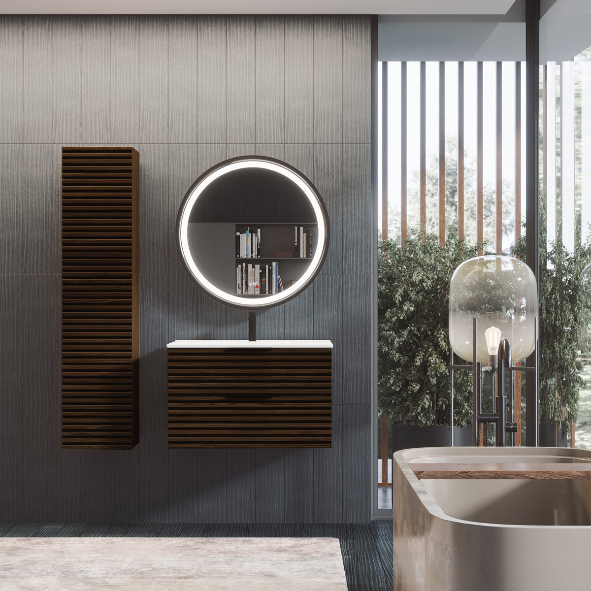 Til større rum kan du kombinere to 60 cm kommoder og toppe med en vask på 120 cm. Resultatet er generøs opbevaring, symmetri og en ensartet designlinje gennem hele møbelvæggen. Serien er udviklet til at fungere lige godt i kompakte badeværelser som i større rum, hvor du vil maksimere både æstetik og funktion.