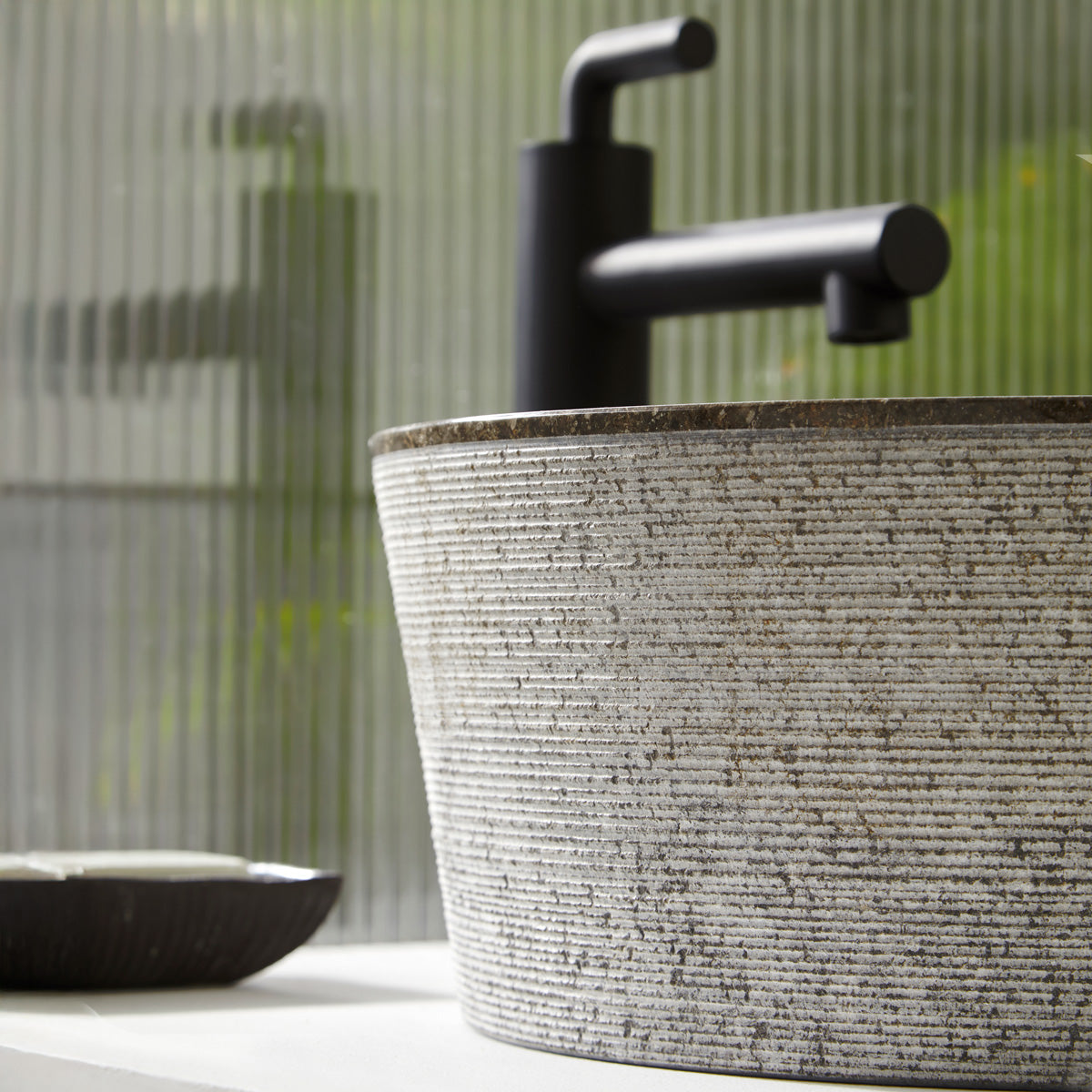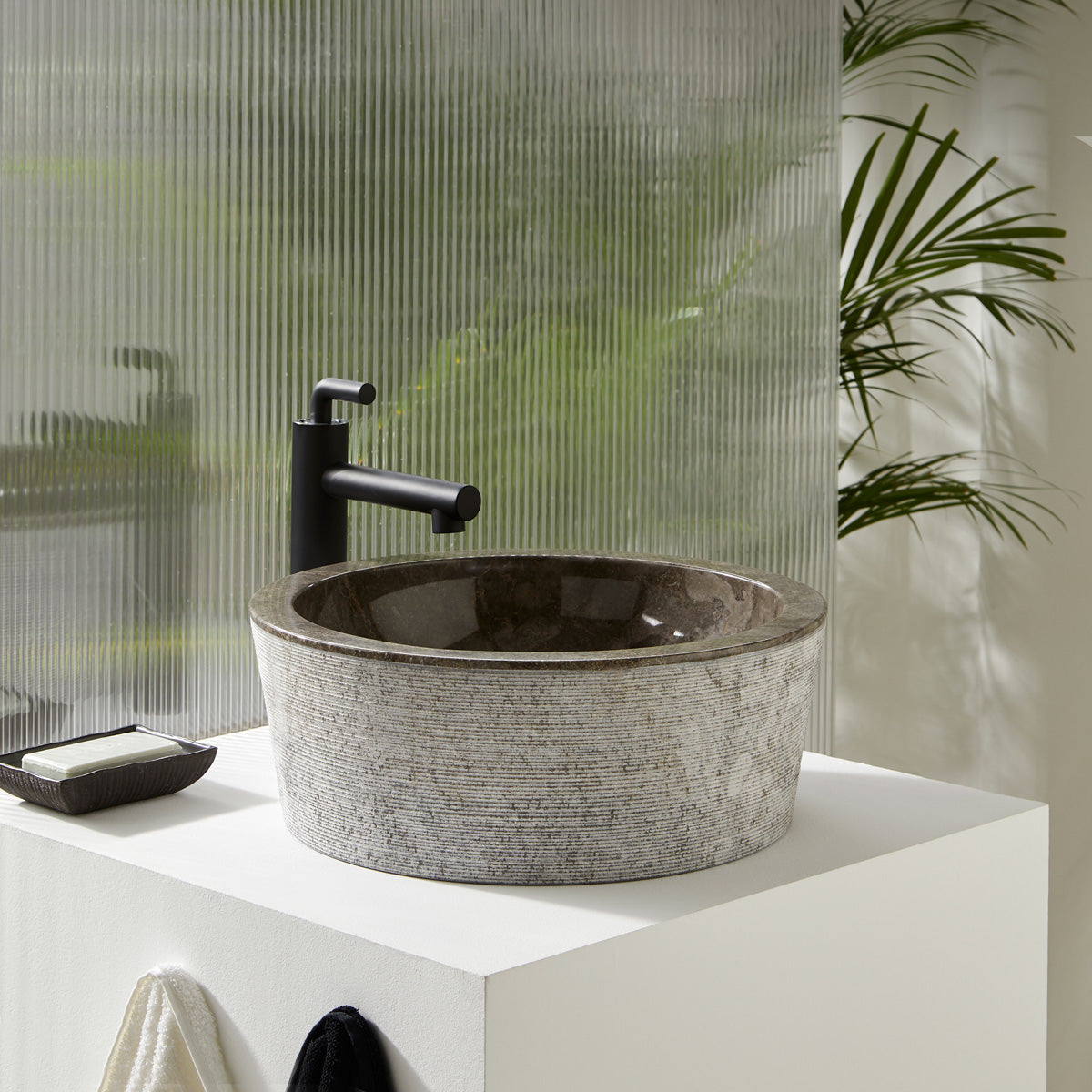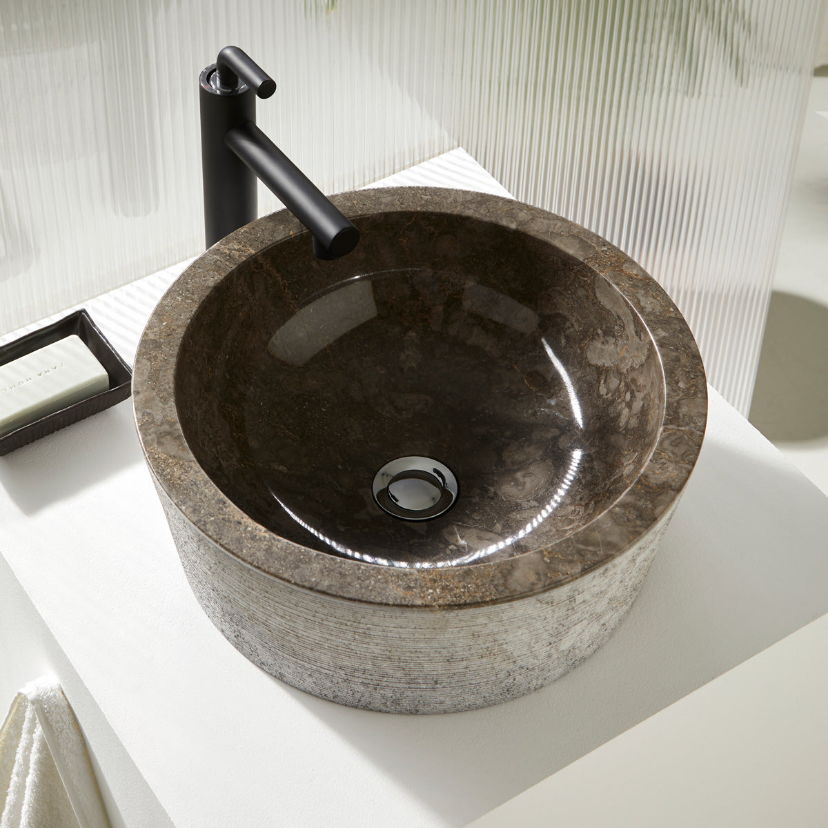 Håndvask Flinta Grå udstråler en eksklusiv fornemmelse af natur og kvalitet. Den grå marmor skifter subtilt i tone og mønster og giver badeværelset et harmonisk og sofistikeret udtryk. Kombinér gerne med et håndvaskbatteri i sort, krom eller messing for at skabe en smuk kontrast mellem natursten og moderne indretning.