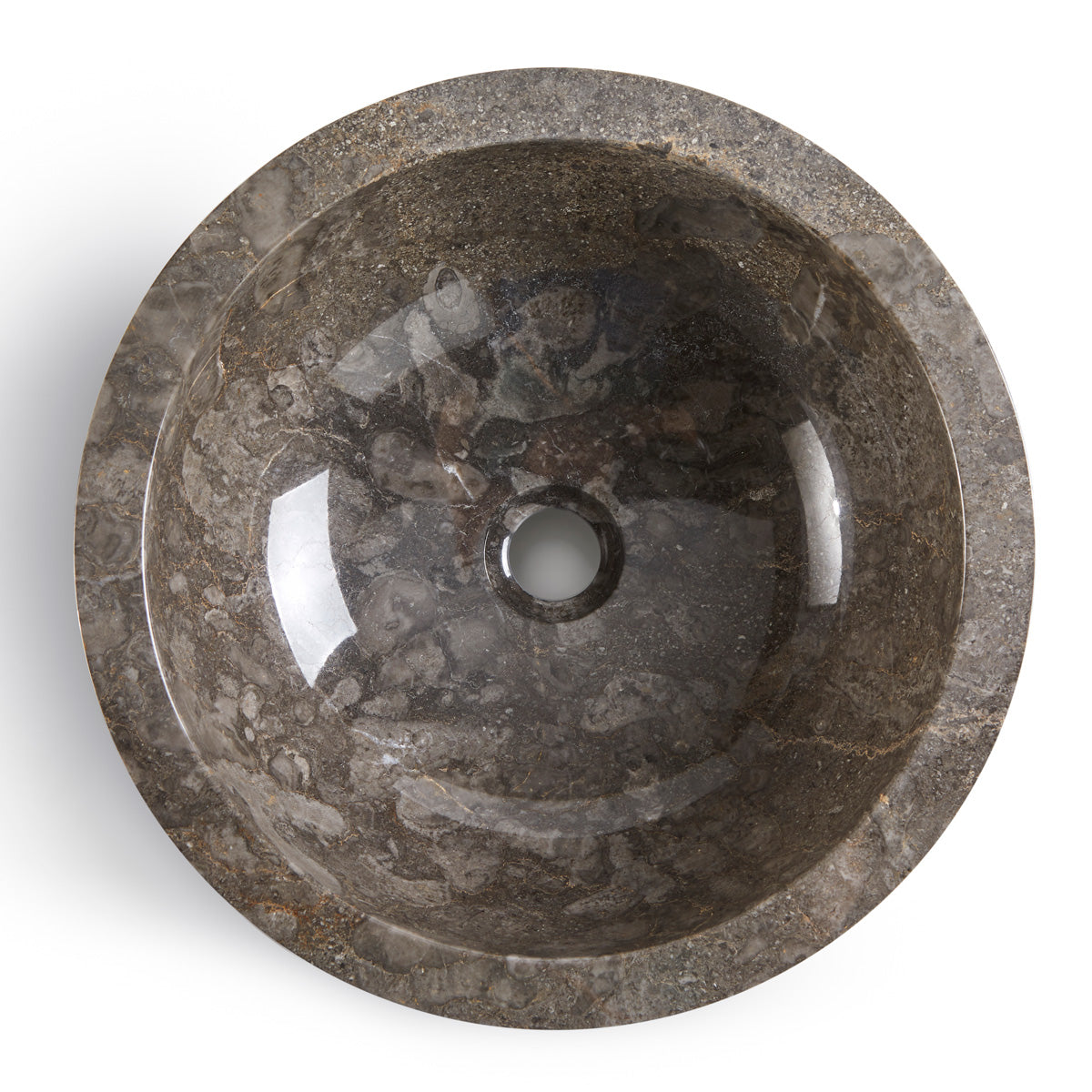 Håndvasken måler 40x40x15 cm og er fremstillet af 100% natursten – et ædelt og holdbart materiale, der modstår både tid og slid. Takket være sin omhyggeligt bearbejdede form har håndvasken en perfekt runding og en jævn, poleret kant. Den er boret i henhold til europæisk standard og passer til almindelige bundventiler. Farve og årer varierer naturligt mellem eksemplarerne, hvilket bidrager til dens unikke udtryk.