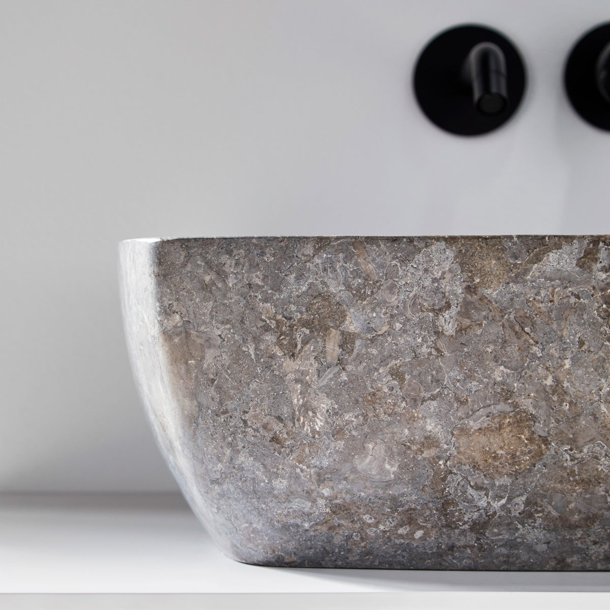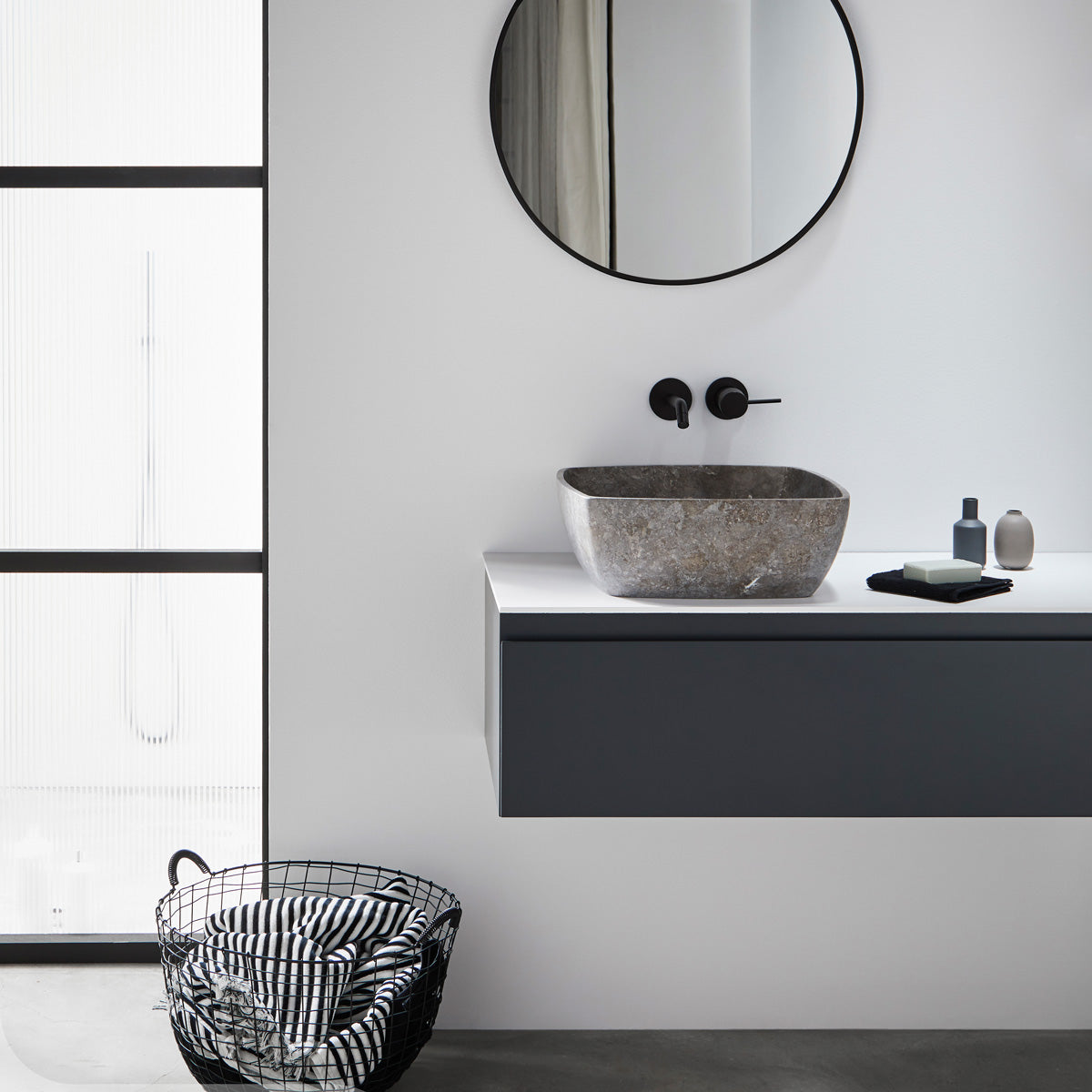 Håndvask Grafit kombinerer et moderne formsprog med den robuste fornemmelse af ægte sten. Den mørke marmor tilfører en eksklusiv stemning og passer perfekt sammen med armaturer i børstet messing, sort eller krom. En elegant detalje, der løfter hele badeværelsets udtryk med naturlig styrke og tidløs skønhed.