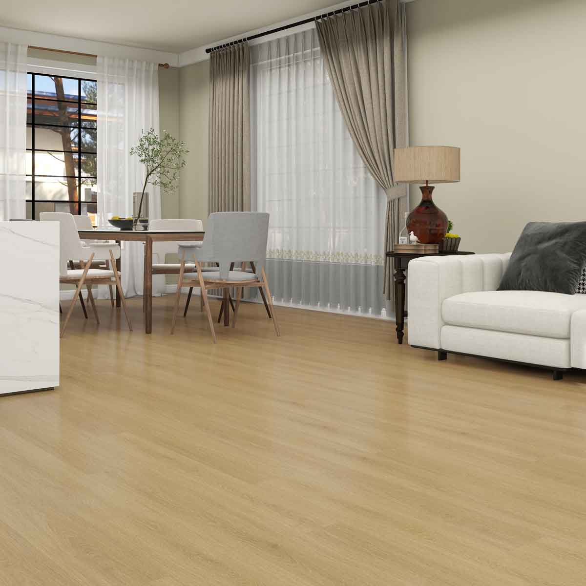 Vinylgulv SPC Amazonas Haya er et stilrent 1-stavs gulv med et lyst og varmt træudseende, som skaber en harmonisk og indbydende følelse i rummet. Den bløde farvetone og den diskrete åretegning giver et naturtro udtryk, der minder om ægte træ.